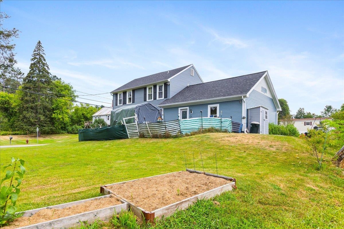 This charming 1850 Colonial offers the perfect blend of character, comfort, and convenience—ideal for first-time homebuyers, growing families, or anyone seeking a peaceful setting with easy access to local amenities. Set on a quiet corner lot, you can relax to the soothing sound of the South Wheelock Brook as it winds beneath the picturesque Chamberlain Covered Bridge. The home features three bedrooms, a full bath on the first floor, a ¾ bath upstairs, and an attached 1.5-car garage with overhead storage; the garage floor has been plumbed for radiant heat, just awaiting hookup. Enjoy beautifully maintained perennial and vegetable gardens, a manageable yard, and numerous updates including new lifetime siding (2023), an electric water heater (2024), and a staymat driveway (2020). With thoughtful renovations completed both recently and prior to current ownership, this move-in-ready home seamlessly combines timeless charm with modern comfort—come see for yourself!