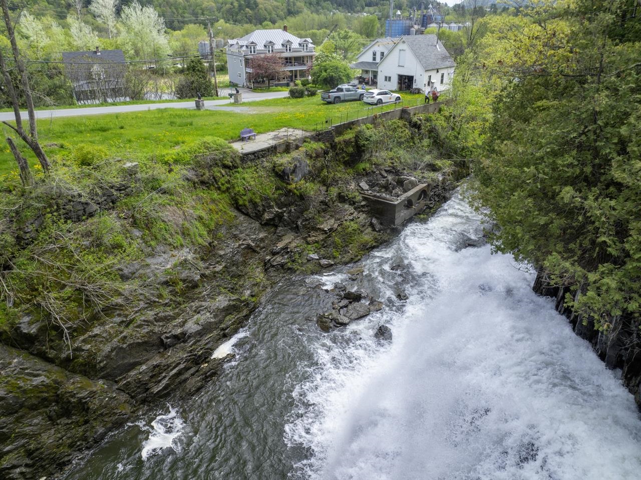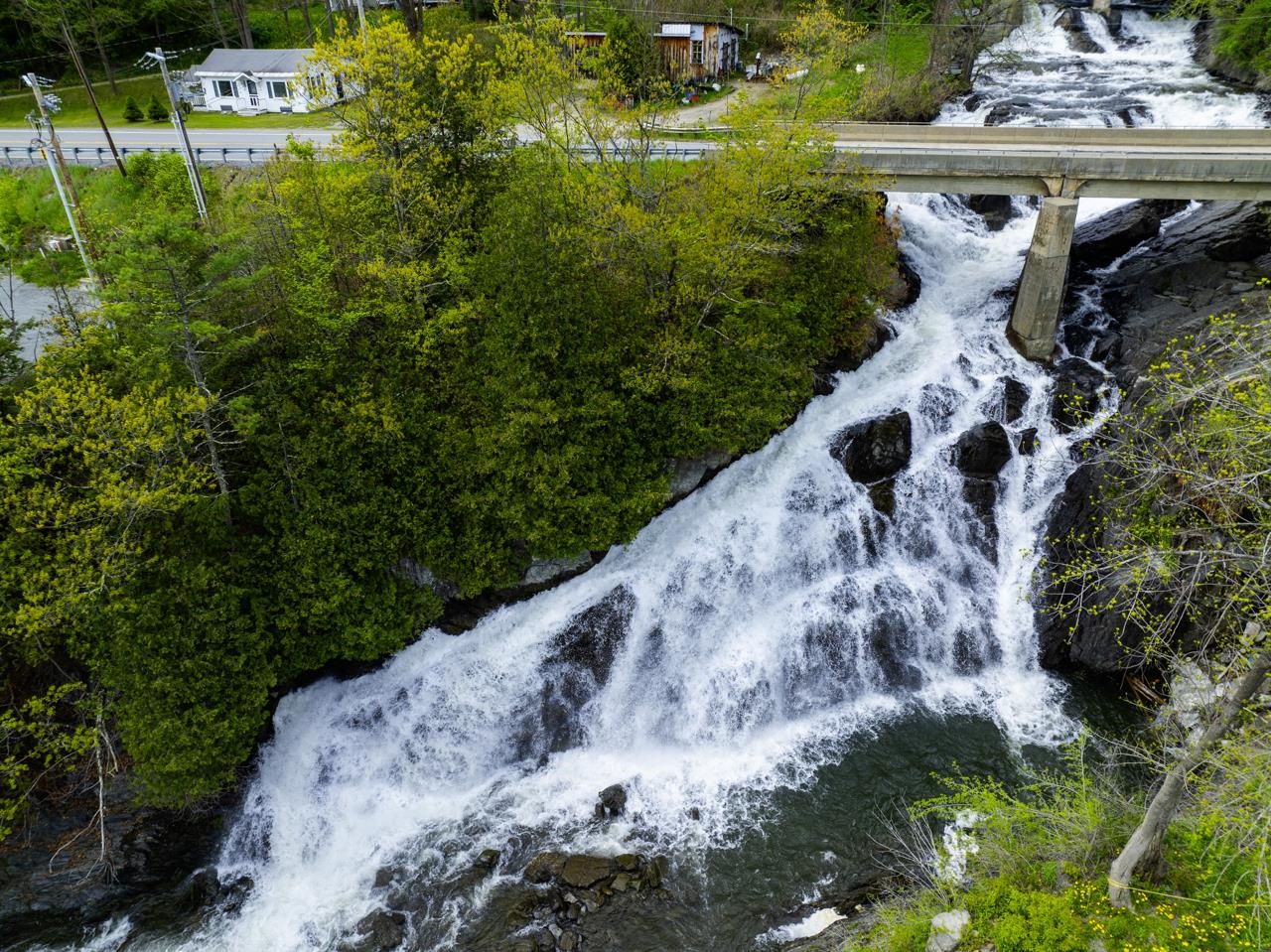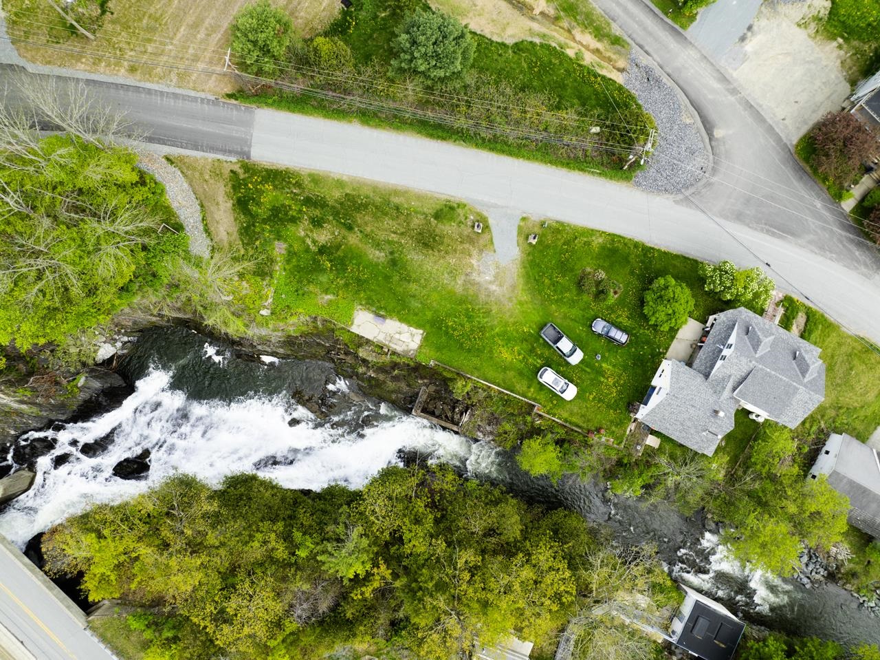 Historic house at the foot of stunning, huge Stevens River waterfall. Coined "Falling Water" by the architect owner, a spectacular site and a big house with significant square footage to work with. Currently an easily dividable 5BR (three up, two down) with unfinished basement apartment, a kitchen on main, partial 2FL kitchen and a place to install a kitchen in the partially finished basement/walkout apartment. With a whopping 750 gallons per day of septic capacity state WW permit, retool this into 7BR single family, a 3BR+2BR Accessory, or a 2BR+1BR+1BR triplex to really crank potential rental income and house hack your way to paradise. New roof in 2023, hardwood floors to reinfinish, rare oak hot water baseboard covers, other beautiful touches to take to the next level. Wonderful workshop in the garage space with large attic for storage, this diamond in the rough has so much integrity. Industrial Morrison Custom Feeds is just south east but that factory view is outweighed by the oh-so-gorgeous waterfall and sound of water. Rough at the edges but liveable, this will be a wonderful reno project into a stately home or income generating multi-family. Leach field on the non-abutting .44 acre or so lot in the field east of the house. Rarely does such an incredible location come on the market. You can even feel the waterfall spray on your face from the observation platform when the water is high. Exalt. Bring vision. Bring meditation.
