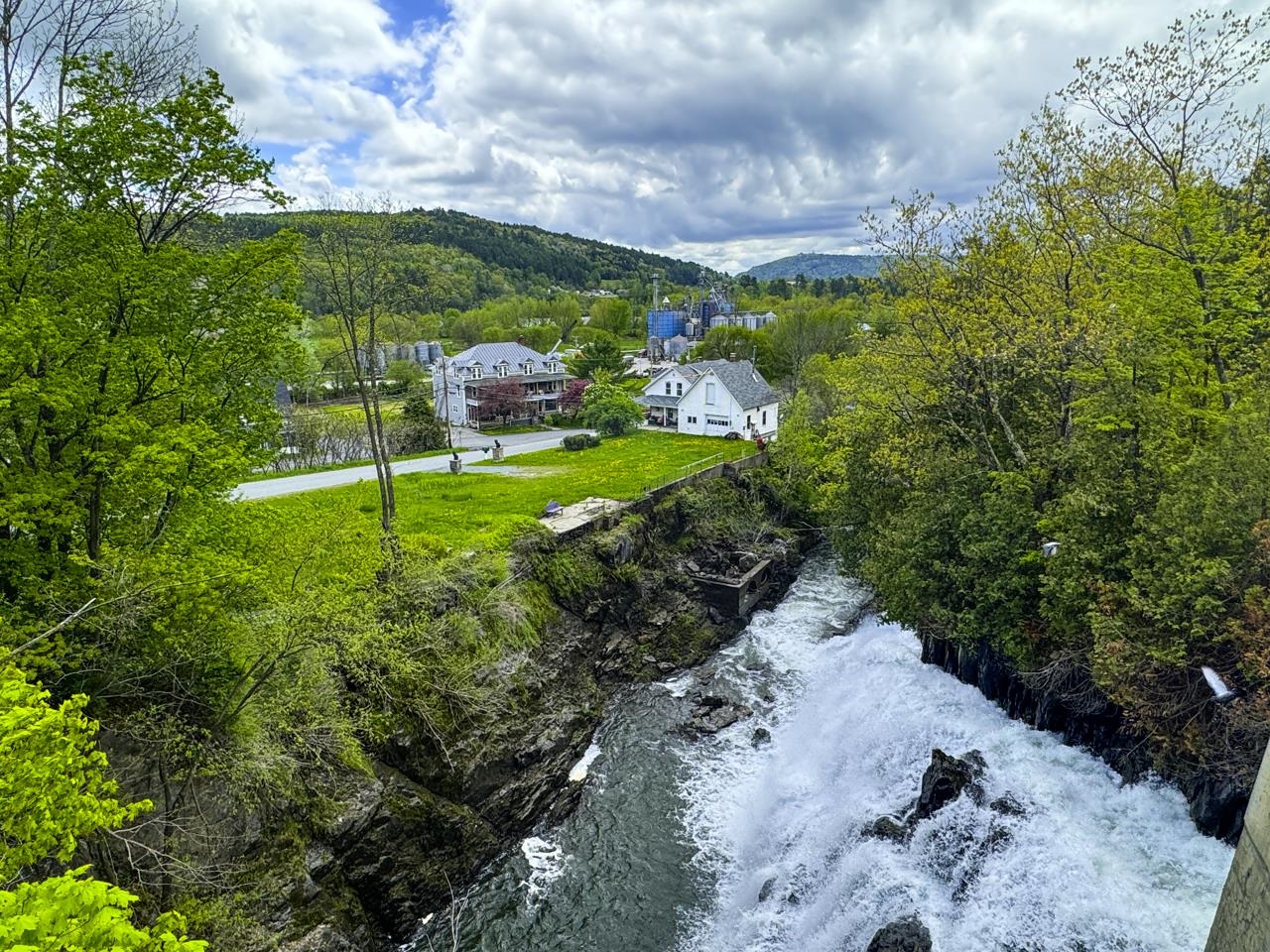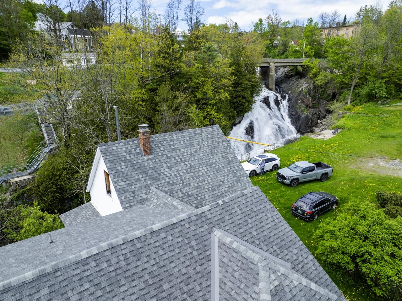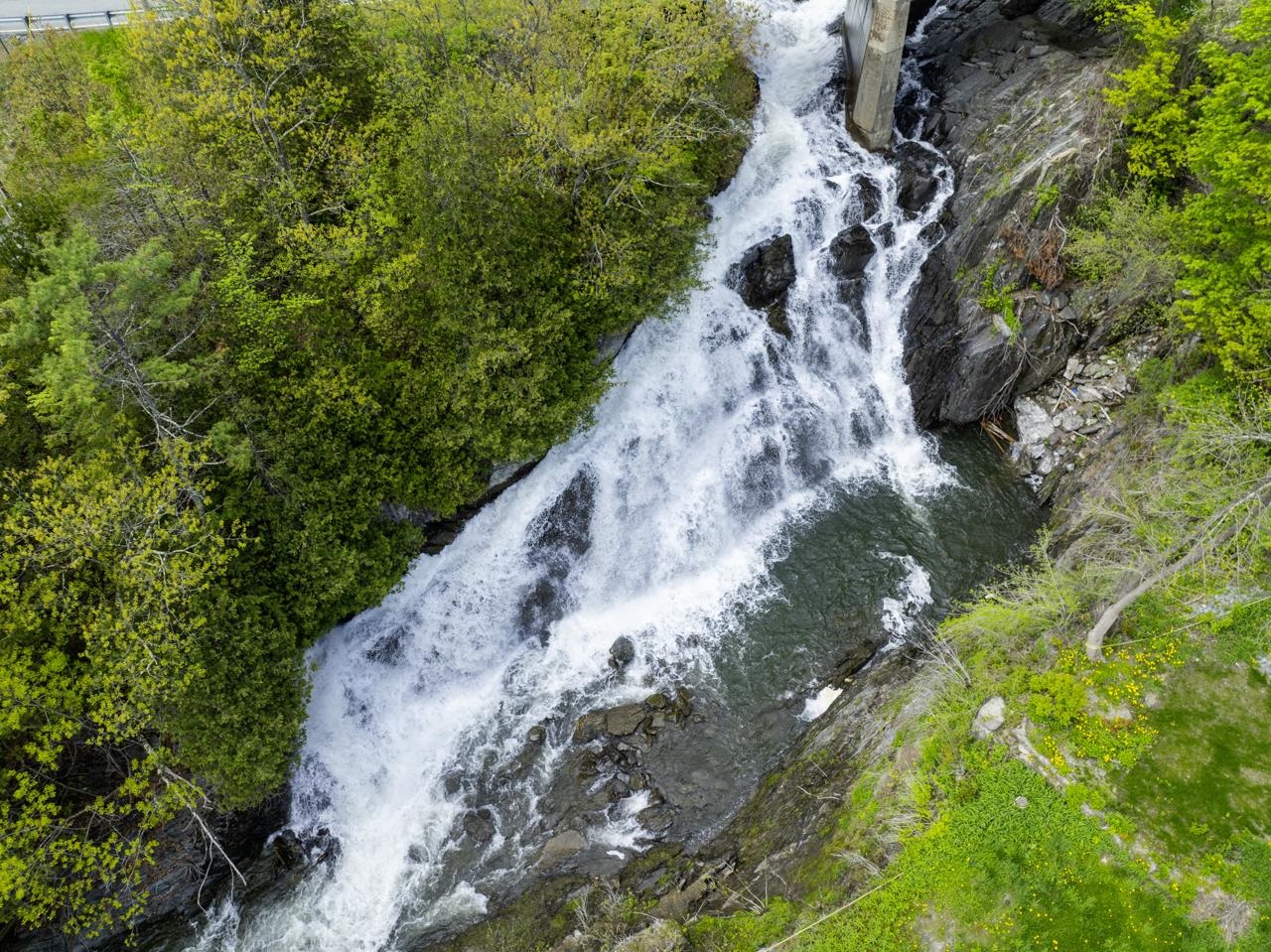 Historic house at the foot of stunning, huge Stevens River waterfall. Coined "Falling Water" by the architect owner, a spectacular site and a big house with significant square footage to work with. Currently an easily dividable 5BR (three up, two down) with unfinished basement apartment, a kitchen on main, partial 2FL kitchen and a place to install a kitchen in the partially finished basement/walkout apartment. With a whopping 750 gallons per day of septic capacity state WW permit, retool this into 7BR single family, a 3BR+2BR Accessory, or a 2BR+1BR+1BR triplex to really crank potential rental income and house hack your way to paradise. New roof in 2023, hardwood floors to reinfinish, rare oak hot water baseboard covers, other beautiful touches to take to the next level. Wonderful workshop in the garage space with large attic for storage, this diamond in the rough has so much integrity. Industrial Morrison Custom Feeds is just south east but that factory view is outweighed by the oh-so-gorgeous waterfall and sound of water. Rough at the edges but liveable, this will be a wonderful reno project into a stately home or income generating multi-family. Leach field on the non-abutting .44 acre or so lot in the field east of the house. Rarely does such an incredible location come on the market. You can even feel the waterfall spray on your face from the observation platform when the water is high. Exalt. Bring vision. Bring meditation.