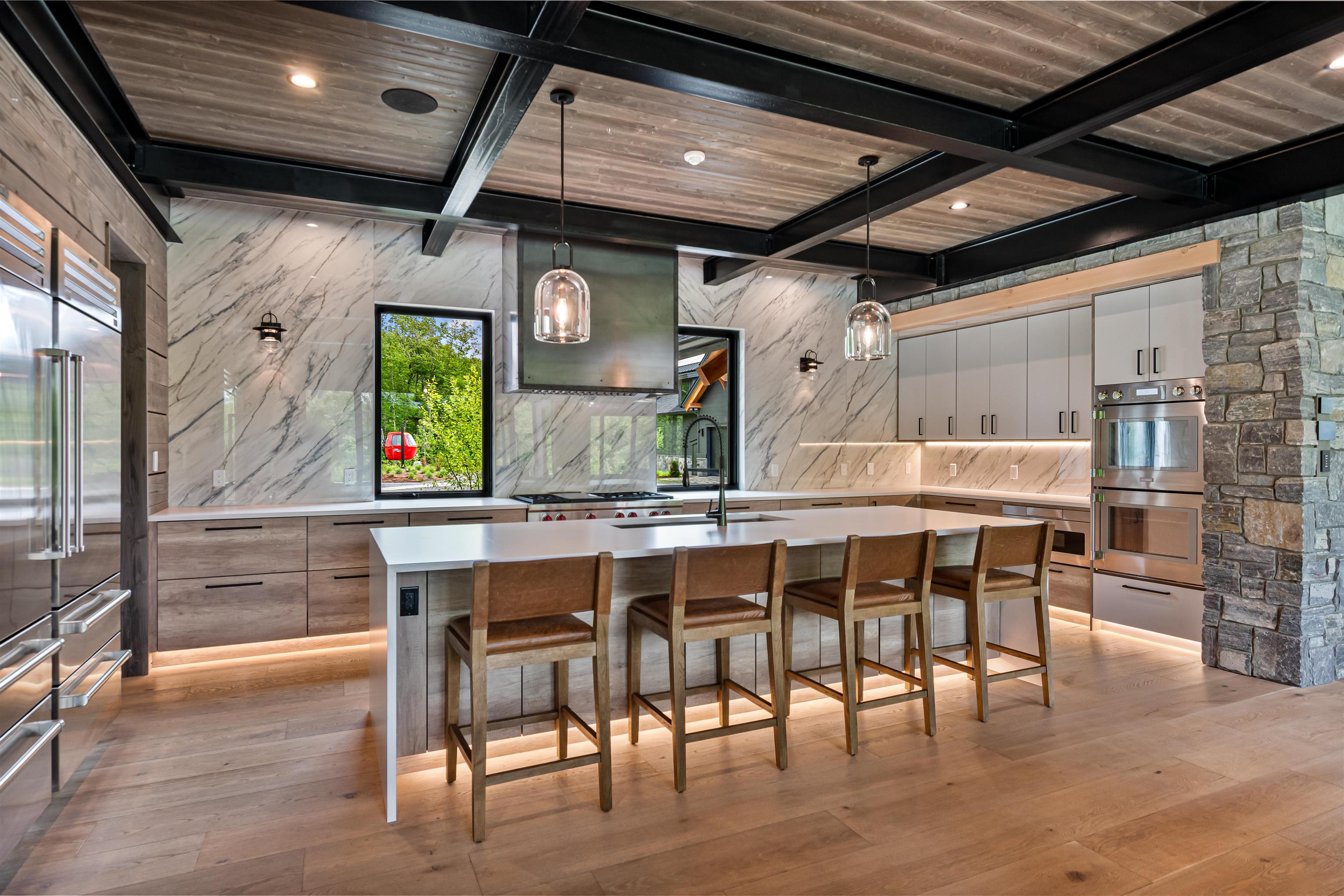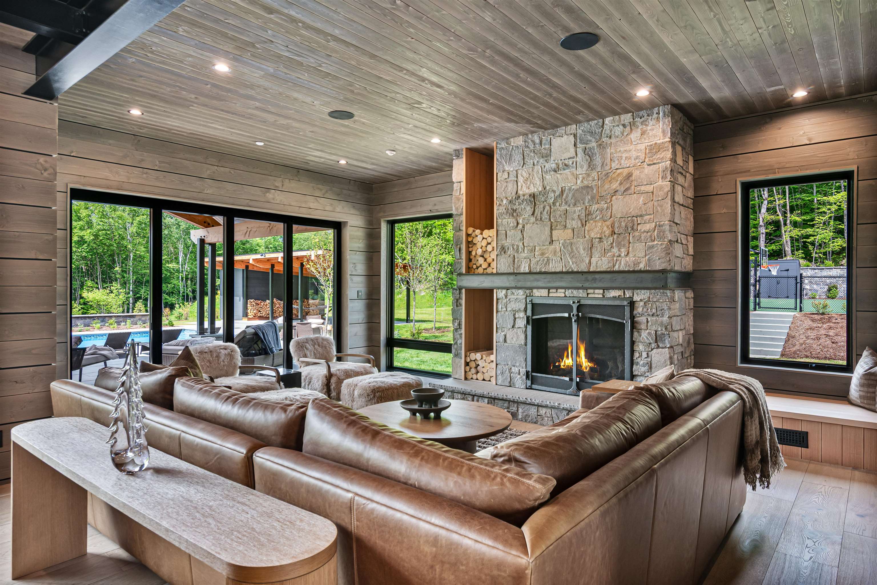 - Bar, Blinds, Ceiling Fan, Dining Area, Gas Fireplace, Wood Fireplace, 3+ Fireplaces, Hot Tub, In-Law Suite, Kitchen Island, Enrgy Rtd Lite Fixture(s), Primary BR w/ BA, Natural Light, Natural Woodwork, Sauna, Security, Soaking Tub, Walk-in Closet, Walk-in Pantry