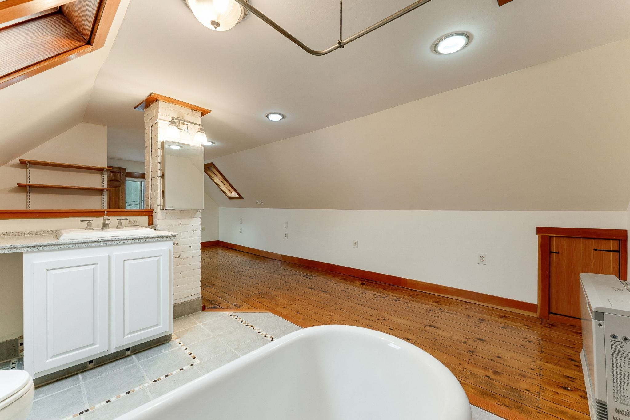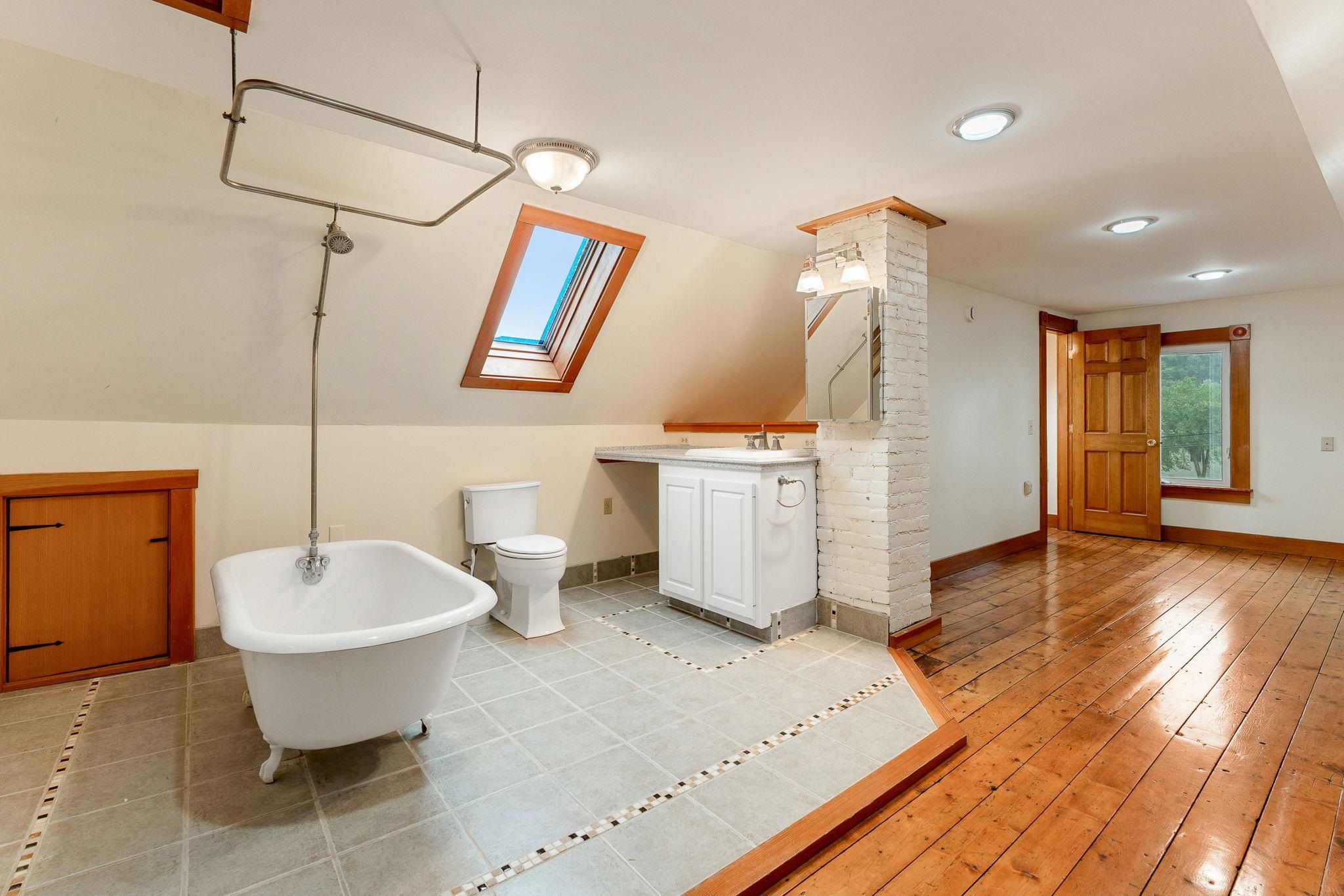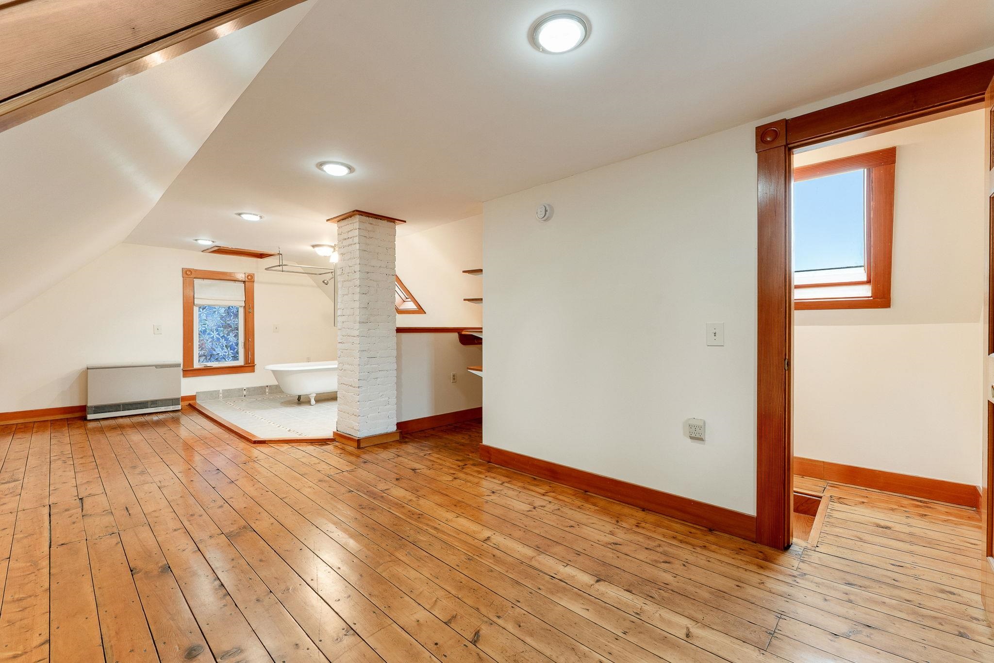 One of a kind 5 bedroom home with a one bedroom efficiency apartment. This classic Montpelier home has been renovated from the studs out. You name it, it’s been updated–and in the right way. Insulation, windows, electric, plumbing. Bathrooms, kitchens, floors, roof, paint, furnace, and more! A large kitchen and a formal dining room (you don’t have to be formal) are on the first floor, along with a living room and a pellet stove. Four bedrooms upstairs, plus a full bathroom. Then, and you’re going to like this–the third floor is an entire primary bedroom floor. Spacious bedroom with its own bathroom. Give yourself a little space for when you want to be alone. For watching movies and writing poetry, that is. The apartment is a real gem. It’s not big, but it’s in good shape and it ALWAYS rents. Most recently it was getting $1100 a month. Or, if you want a first floor bedroom, it could easily be incorporated back into the main house. Driveway parking is behind the house, and works for 2-3 cars. Super convenient to downtown Montpelier’s stores, restaurants, and the schools. Lots of space means lots of options! One real estate website implies that this is in a flood hazard area. It is NOT in the 1% flood hazard zone. **See 3D tour**