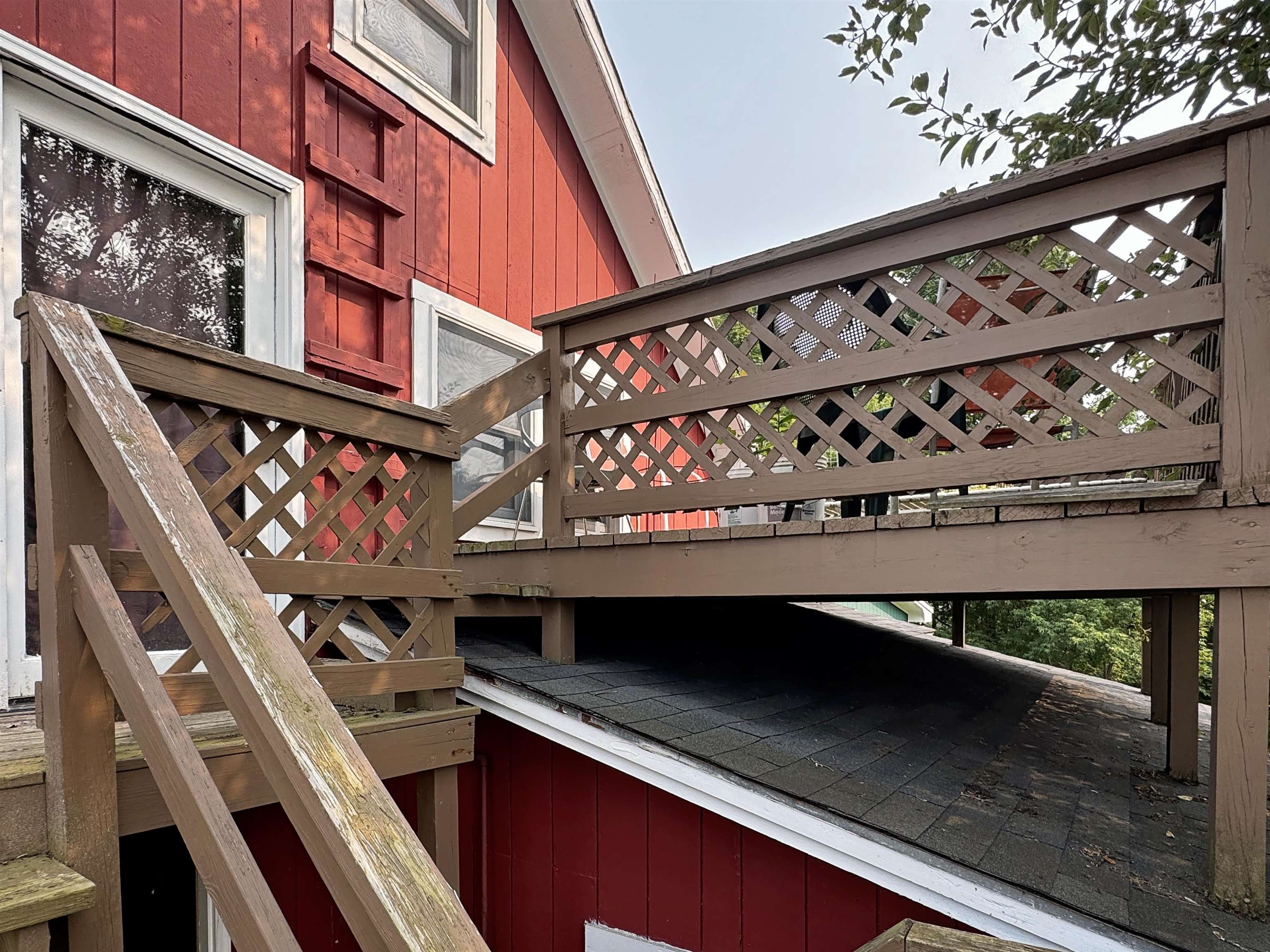 Morrisville Village House with Apartment over 2 car garage. The town classifies this property as 2 apartments. The house has 4 bedrooms and 1 full bath on the 2nd floor and Kitchen, Dining room, Living room, Office, 1 3/4 bath on the first floor with screened porch off the kitchen. Attached is a floor plan which corresponds with the photo labels for room location. House has oil heat. The apartment has 1 loft bedroom with large area for kitchen, living, and office space. Apartment also has a deck. Apartment has propane heat. The property could be used as a home with apartment rental or rent out both. Some TLC is required. Located close to Copley Hospital, Copley Country Club, Morristown Schools and downtown which features shops and restaurants. About 15 minutes to Stowe Village.