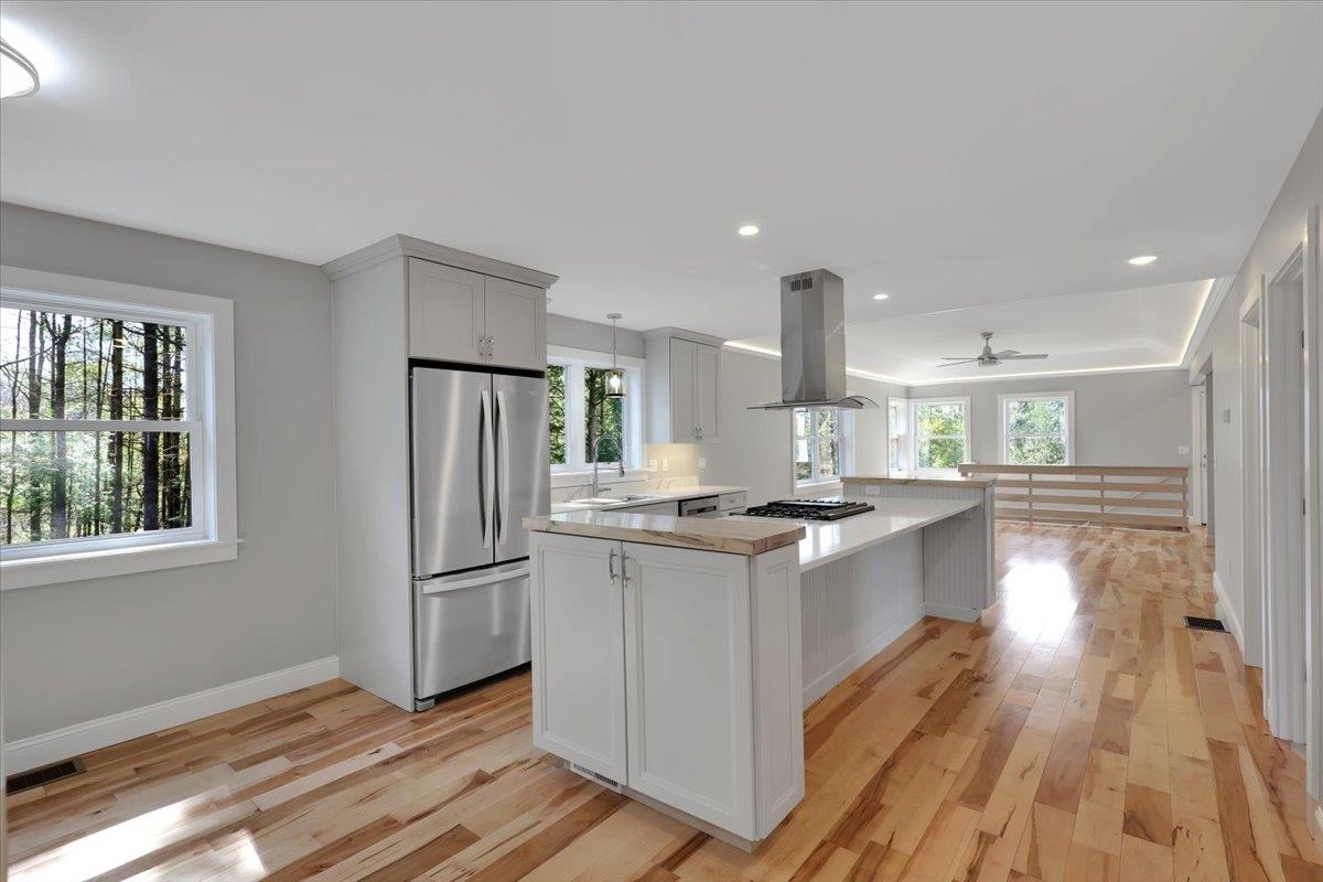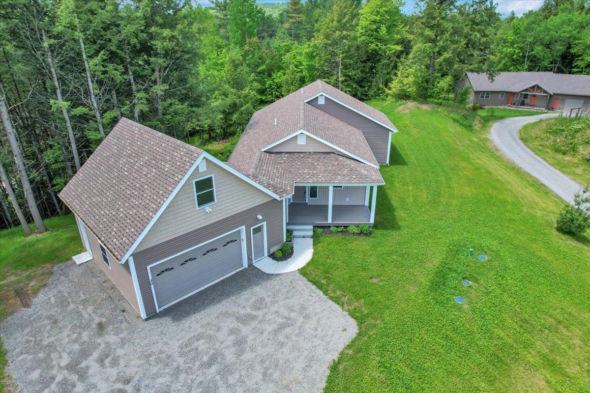 Welcome to 49 Hemlock Circle in Jericho — a stunning new construction home designed for modern comfort and Vermont living. This thoughtfully crafted 3-bedroom, 2-bath home sits on 2.3 acres in a private subdivision, complete with an additional 80 acres of common land to explore. Perfect for the outdoor enthusiast, you’ll have mountains, trails, and year-round recreation right at your fingertips. Inside, you’re greeted by beautiful hardwood floors, abundant natural light, and an open-concept layout that blends style and function. The dining area flows seamlessly into the gourmet kitchen, featuring an oversized island ideal for entertaining while preparing meals. The kitchen opens to the vaulted great room, anchored by a cozy gas fireplace — the perfect gathering spot in every season. The primary suite is a private retreat with vaulted ceilings, a spa-like en suite bath, and direct access to the covered porch, also connected to the main living area for easy indoor-outdoor living. Two additional bedrooms provide flexibility for family, guests, or office space. The lower level offers a spacious finished rec room, while the large bonus room above the oversized 2-car garage is perfect for a home office, studio, or gym. Central AC adds year-round comfort. Set in a peaceful, rural location yet just minutes from I-89, Essex, and Williston, this home offers the best of both worlds — quiet country living with easy access to local conveniences. Experience the Vermont lifestyle!
