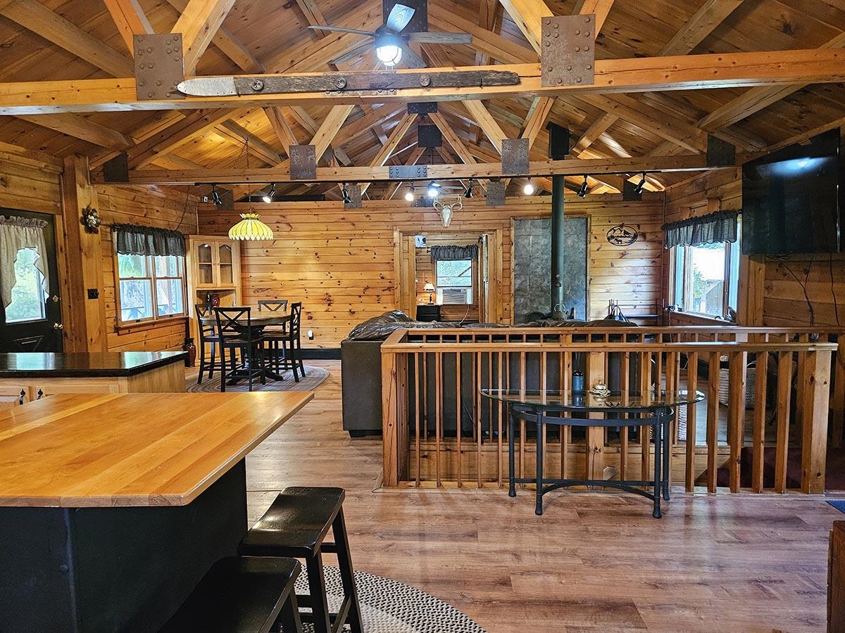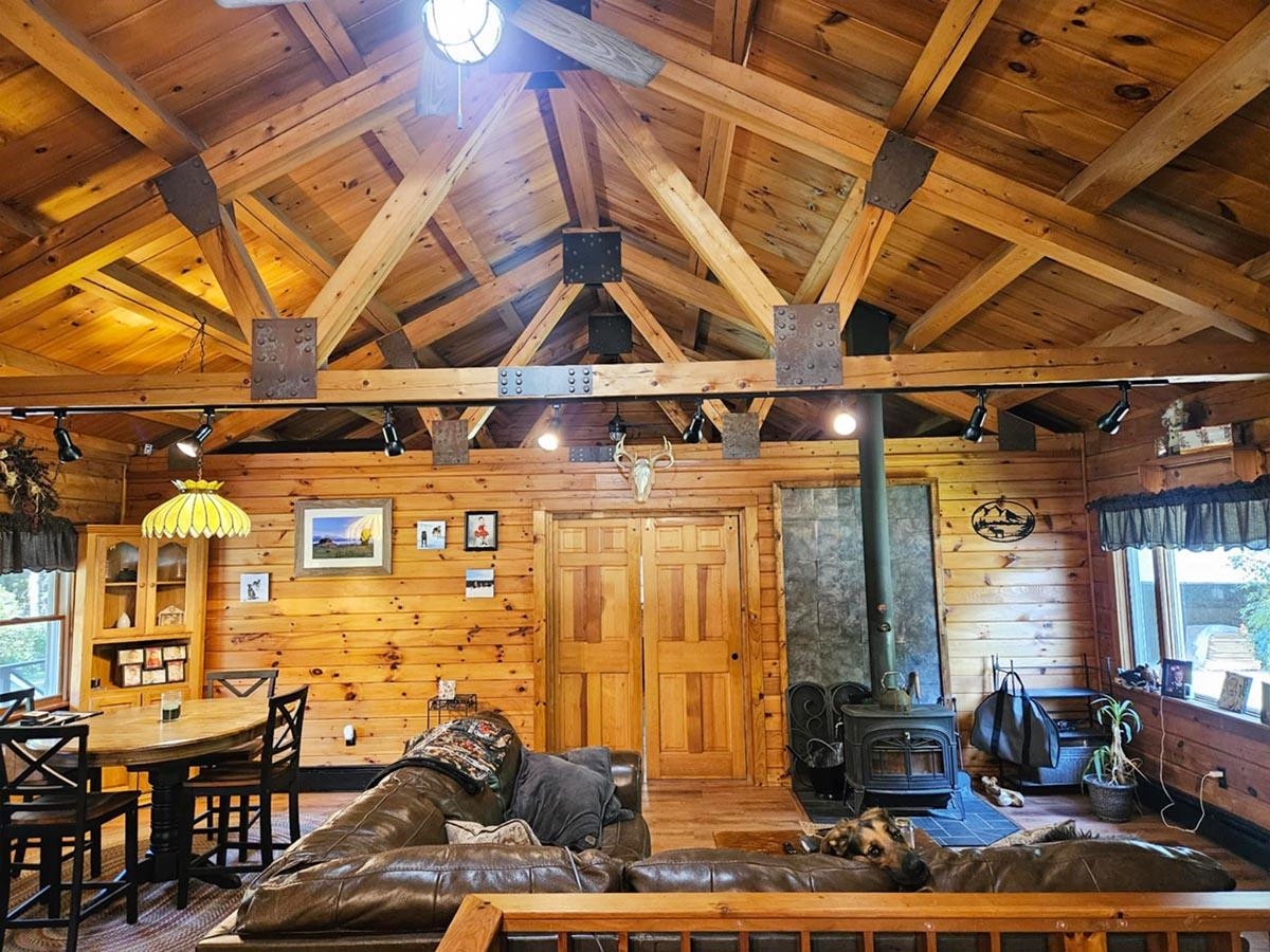 - Cathedral Ceiling, Ceiling Fan, Dining Area, Wood Fireplace, Kitchen Island, Primary BR w/ BA, Natural Light, Natural Woodwork, Soaking Tub, Indoor Storage, Vaulted Ceiling, Walk-in Closet, Wood Stove Hook-up, Wood Stove Insert, Basement Laundry, Smart Thermostat