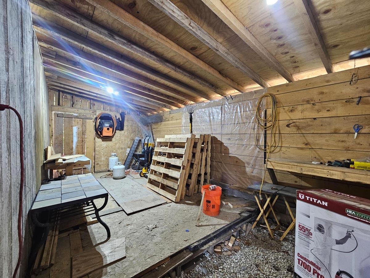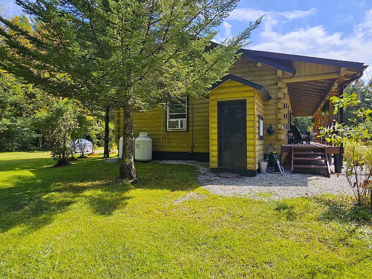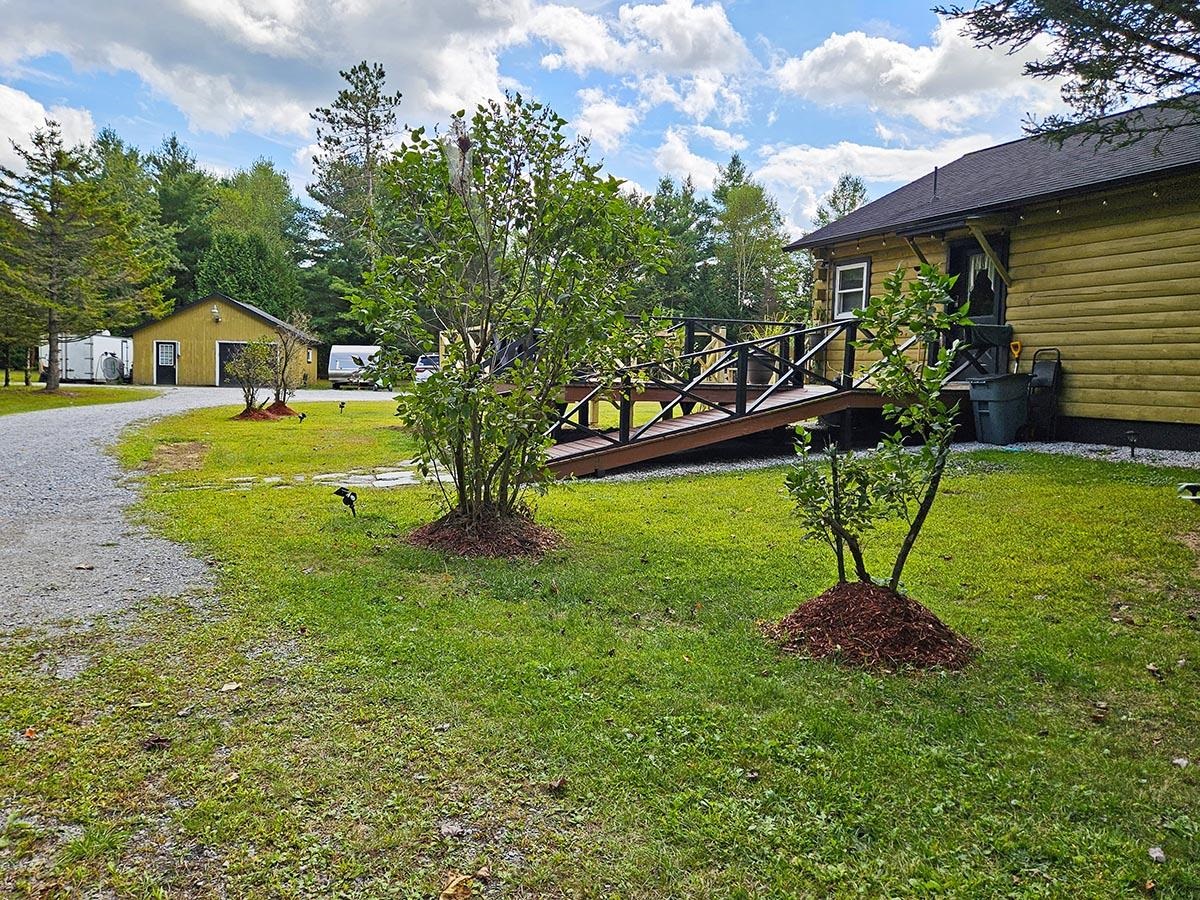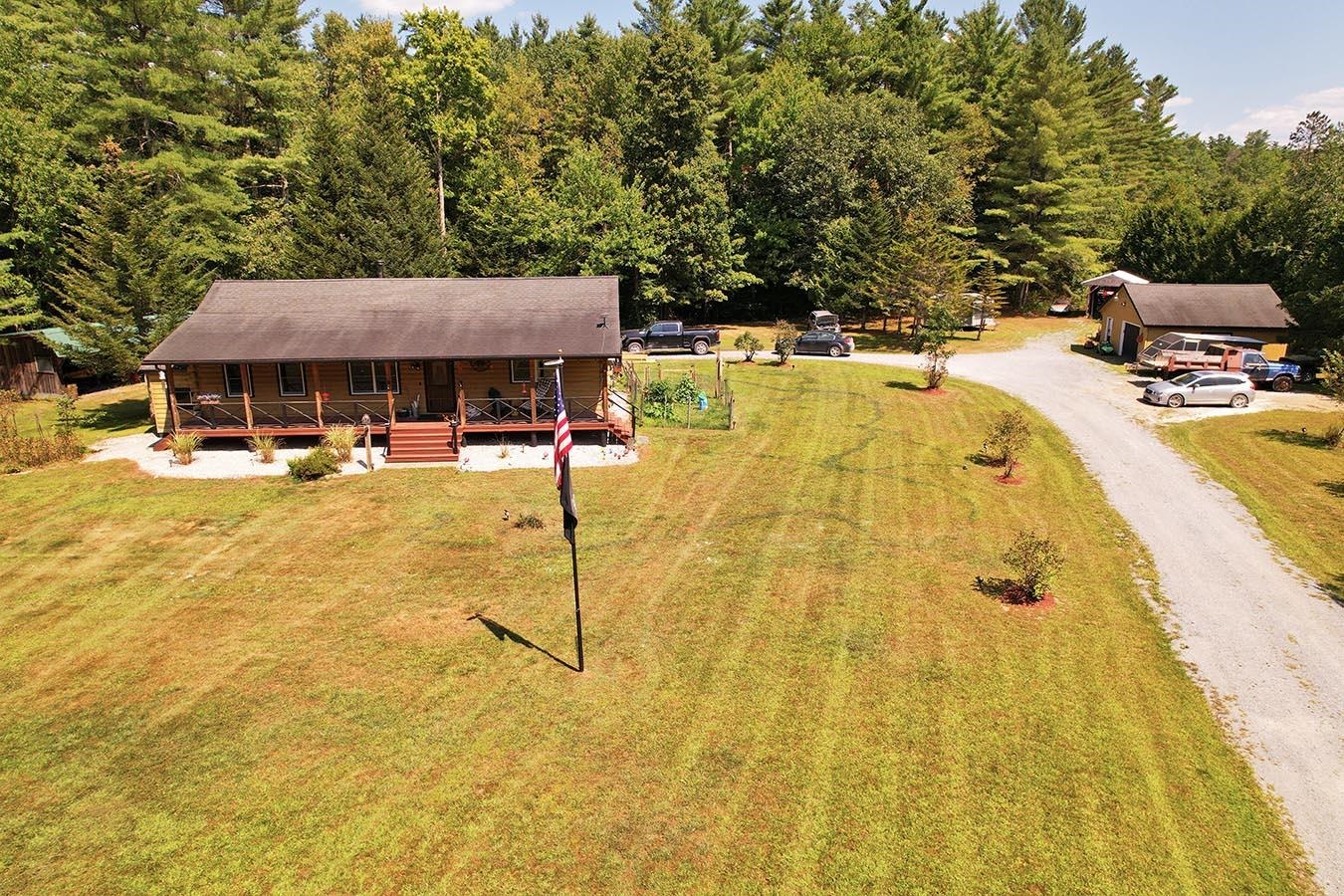 Post-and-beam beauty on 2.85 acres blends rustic country charm with modern upgrades. Entryway lined with maple, lilac, apple, & oak trees, and the freshly landscaped yard leads to a welcoming covered porch. Inside, tongue-and-groove pine walls and cathedral ceilings create a warm, natural feel. Kitchen features a butcher block island, new sink, and new dishwasher. Open living space includes a cozy wood stove and half bath. Spacious primary bedroom offers a walk-in closet and en-suite bath with double sinks & refinished countertop. New luxury vinyl floors throughout. Heated basement offers more than 860 square feet of untapped potential, with walk-up egress to side yard, storage, laundry nook with workspace, den, new propane furnace, & finished rec room. Per owner - septic system is sized to support converting the basement rec room into a 2nd bedroom with proper window update. Smart Nest thermostats with separate zones for each level and smart lock entry doors. Enjoy evergreens, fenced garden, and newly expanded back deck overlooking lush acreage. Outbuildings include a climate controlled garage and a pole barn/workshop with horse stall and hobby space. Upgrades: solar-lit driveway, handicap-accessible ramp, seamless gutters, and frost-free exterior spigots. Bordering woods for privacy. Near ATV/snowmobile trails and fishing at Lamoille River. Easy commute to Burlington, Cambridge, Smugglers’ Notch, and VT State University Johnson. Furnishings negotiable for a turn-key option.