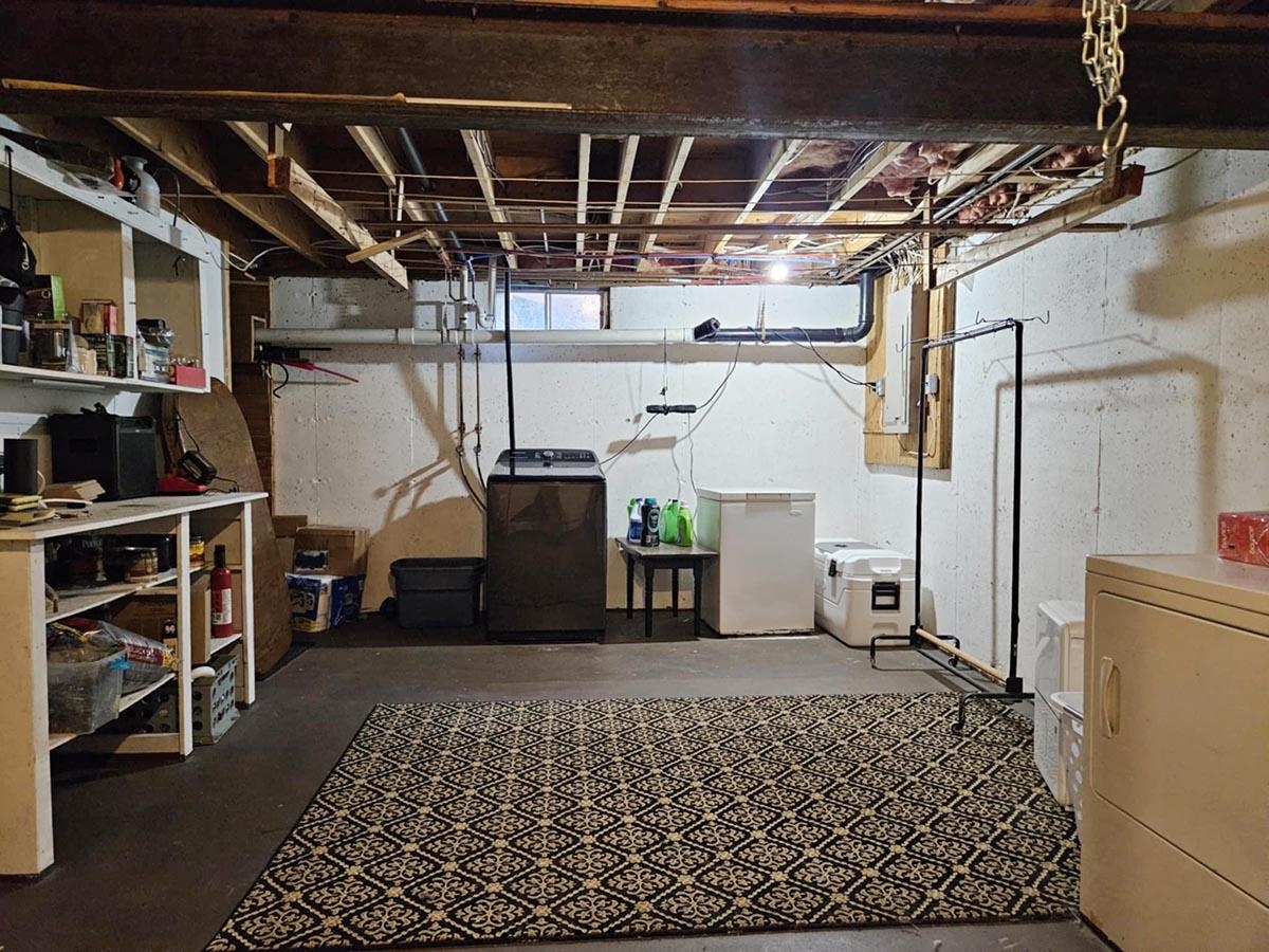- Concrete, Concrete Floor, Full, Partially Finished, Exterior Stairs, Interior Stairs, Storage Space, Interior Access, Exterior Access, Basement Stairs