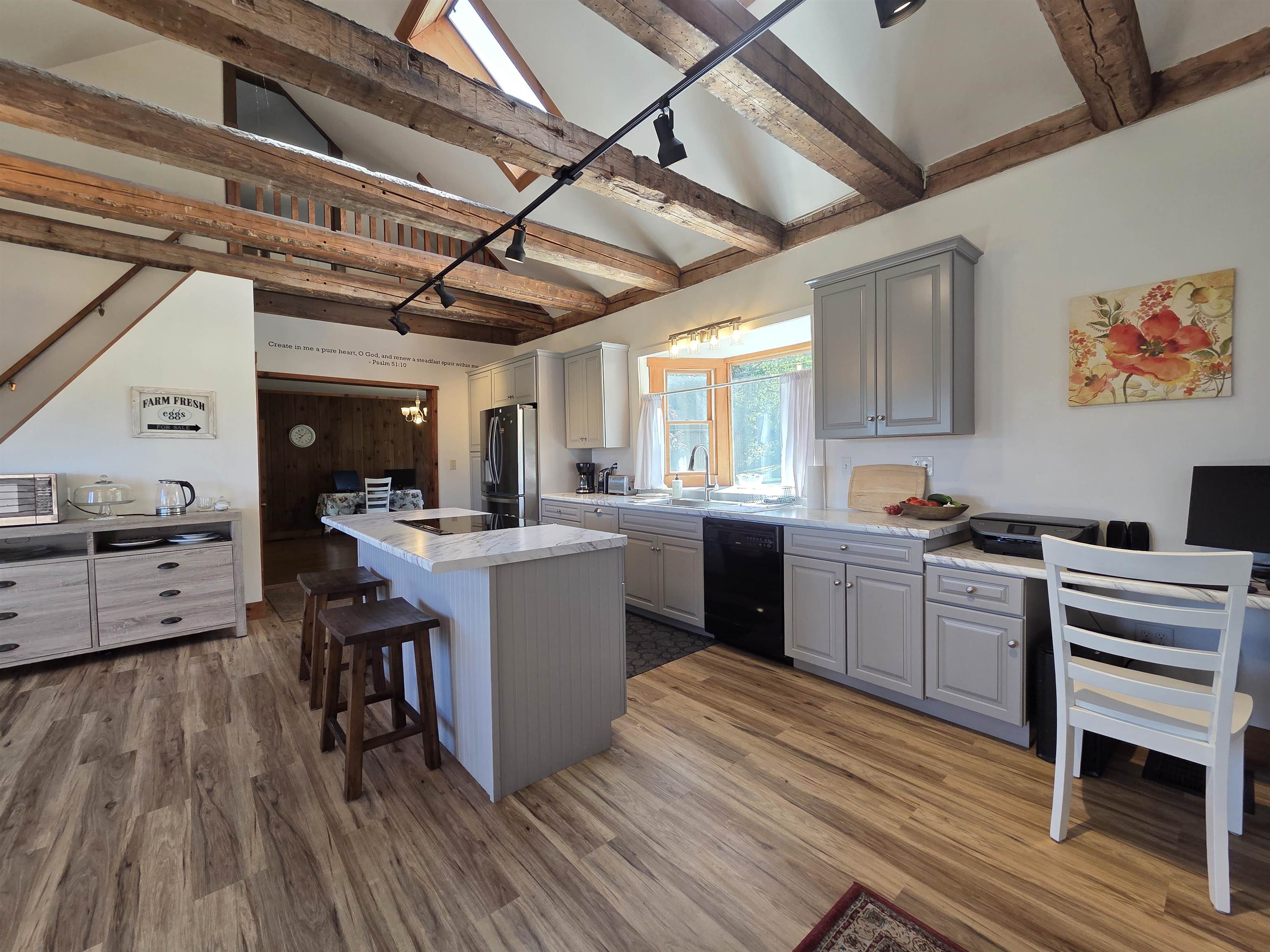 - Attic with Hatch/Skuttle, Cathedral Ceiling, Dining Area, Kitchen Island, Primary BR w/ BA, Natural Light, Natural Woodwork, Skylight, Indoor Storage, Walk-in Pantry, 1st Floor Laundry