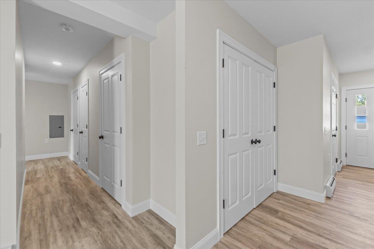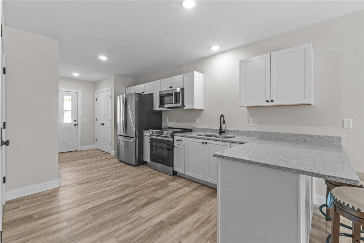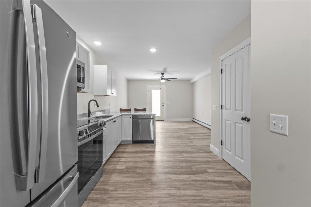 Welcome to Unit #103 at Willys Lane, a brand-new 2 bedroom flat designed for easy single-level living with modern style throughout. The open floor plan features a bright kitchen with quartz countertops, stainless steel appliances, and abundant cabinetry, flowing seamlessly into the living and dining areas. Durable vinyl plank flooring adds both warmth and practicality, while large windows fill the space with natural light. The spacious primary suite is a true retreat with its own private full bath, complemented by a comfortable second bedroom and an additional 3/4 bath. A washer and dryer are thoughtfully included, offering convenience rarely found in new construction. Enjoy outdoor living on your private patio, an attached garage roughed in for EV charging, and the benefits of energy-efficient design. With a walkable location close to shopping, dining, and parks, Unit #103 combines comfort, style, and accessibility in one exceptional package.
