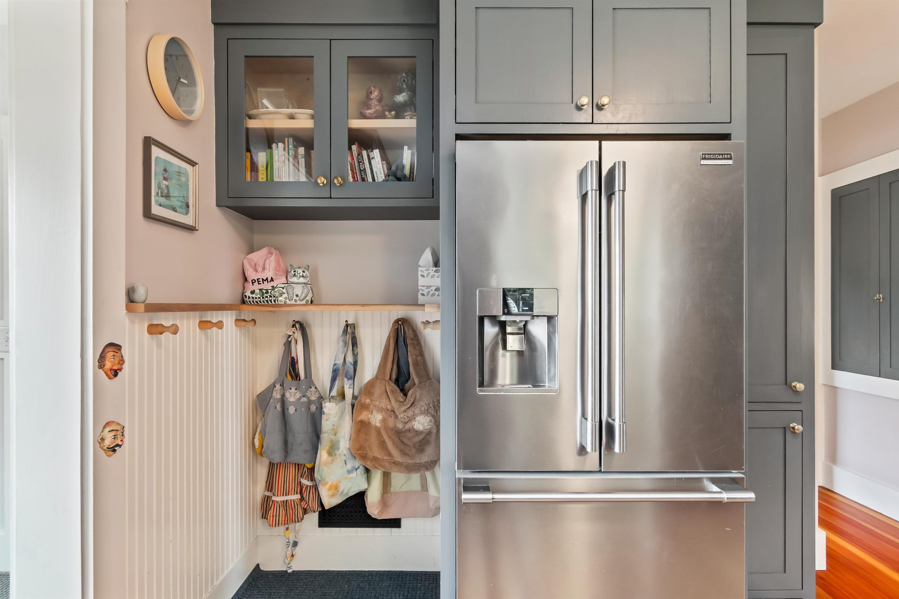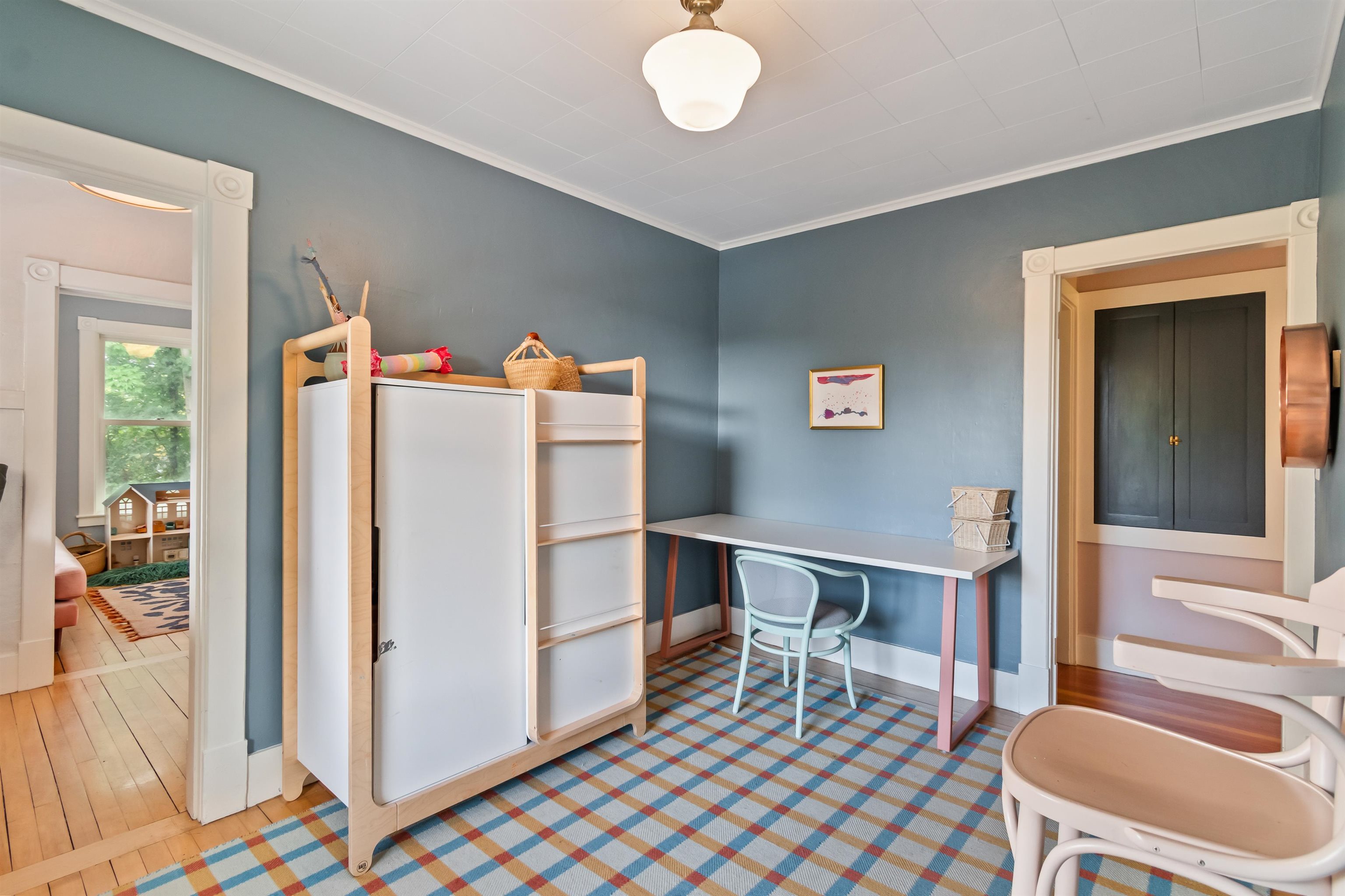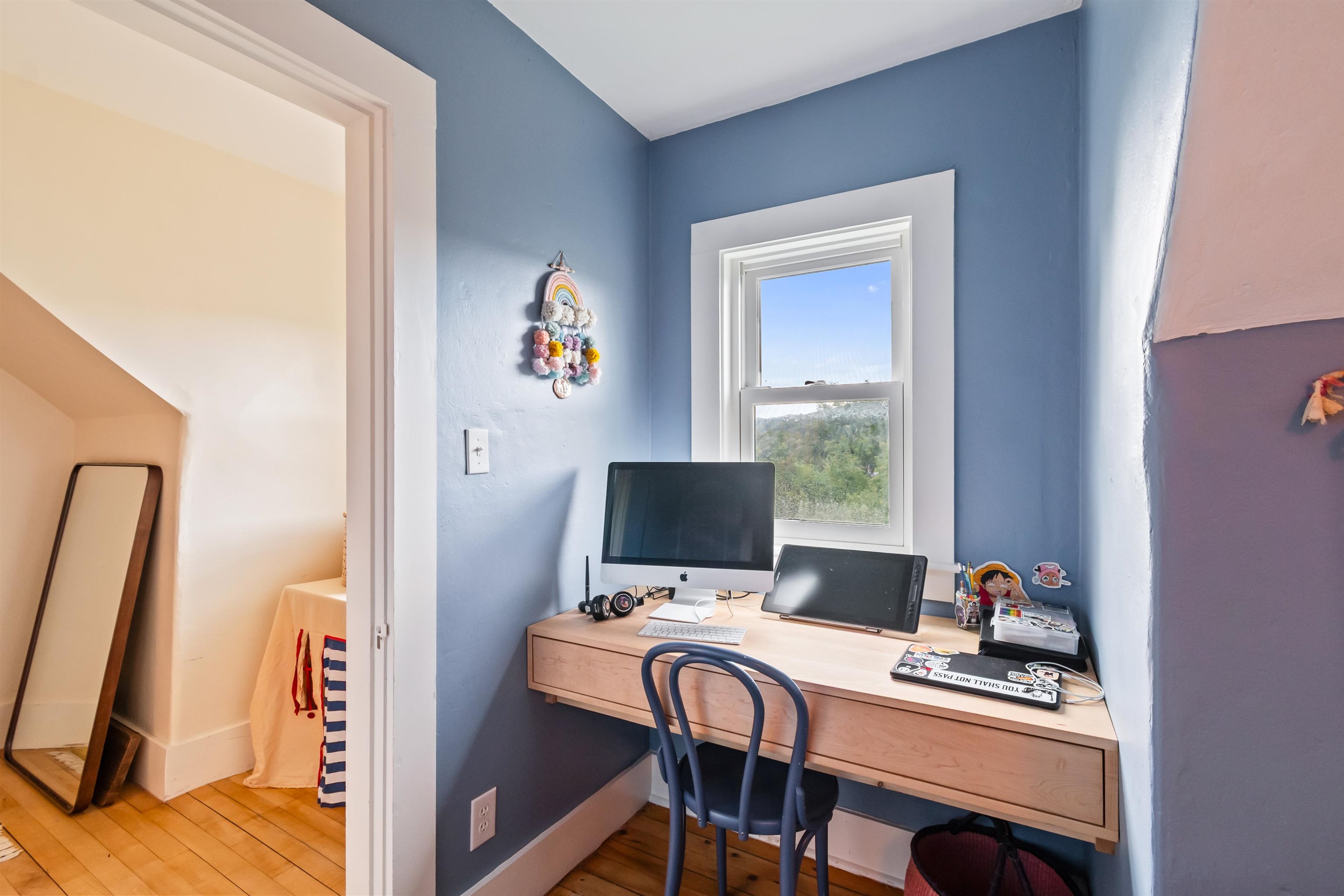 Discover a truly one-of-a-kind home in one of Montpelier's most unique and private neighborhoods. Set high above the river this property has privacy and views of the city. Every inch of this home has been thoughtfully renovated with high-end finishes, designer fixtures and beautiful craftsmanship. Enter through one of two beautifully crafted solid wood Dutch doors, inviting in natural light and fresh air. Step into a recently added mudroom boasting custom cabinetry and an oversized window displaying perfect fall views of the golden dome. The heart of the home is a custom-designed kitchen featuring a 6-burner gas range, farmhouse sink, cherry countertops, and tailored cabinetry that blends style and function. The main floor has abundant space and flows with ease. Cozy up by the efficient and stylish Thelin Gnome pellet stove, a perfect complement to the home's warm and welcoming vibe. The second floor offers three spacious bedrooms, including a primary bedroom featuring his & hers closets as well as a joined office/nursery which was formerly a fourth bedroom and could be once again. Third floor offers a newly finished attic providing large bonus space. Outside, a large covered front porch overlooks the private expansive yard surrounded by mature trees, with plenty of room to garden or play. Steps away you can access trails in the vast city forest that backs this hidden gem of a neighborhood.