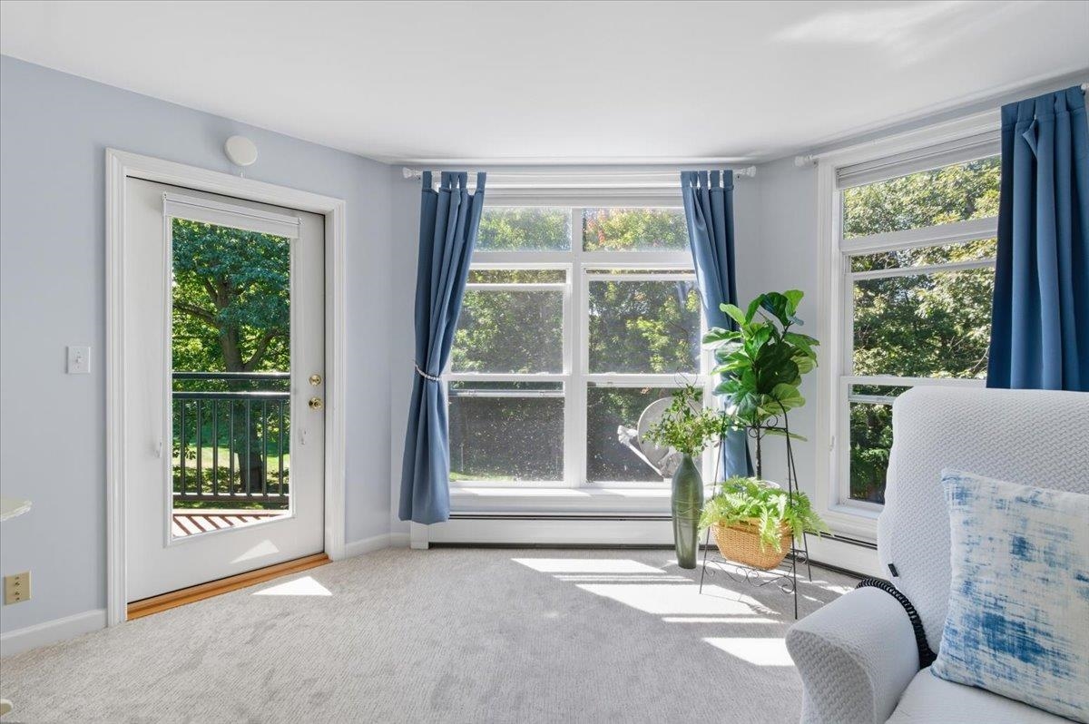Enjoy peaceful living in this one-level, second-floor condo offering seasonal views of Lake Champlain! Nestled in a lush, wooded setting close to the Burlington Bike Path, this home combines nature, convenience & comfort! Inside, you’ll find a freshly updated interior with new carpeting and fresh paint in the primary bedroom and open-concept living/dining area. The spacious layout includes a living/dining room that comfortably accommodates a large dining table, sofa, chairs & big-screen TV, with natural light streaming in through large windows and a pass-through window to the kitchen. The kitchen offers ample cabinetry, stainless steel appliances, a pantry closet with built-in shelving, and a center island with seating for two that’s perfect for entertaining or casual meals. Head out onto your private balcony, a quiet spot to relax after a long day. The primary bedroom suite features two closets (including a walk-in) and a spacious en suite bath with a large corner tub/shower that has water jets for a whirlpool bath. A second bedroom is located just off the kitchen, adjacent to a separate bath with step-in shower. Additional features include a laundry room with storage, custom window shades, assigned parking, an elevator in the building and the low-maintenance lifestyle of condo living in an association that covers water, sewer, heat, plowing, landscaping & more! Don’t miss this great opportunity to own a move-in-ready condo in a highly desirable Burlington location!