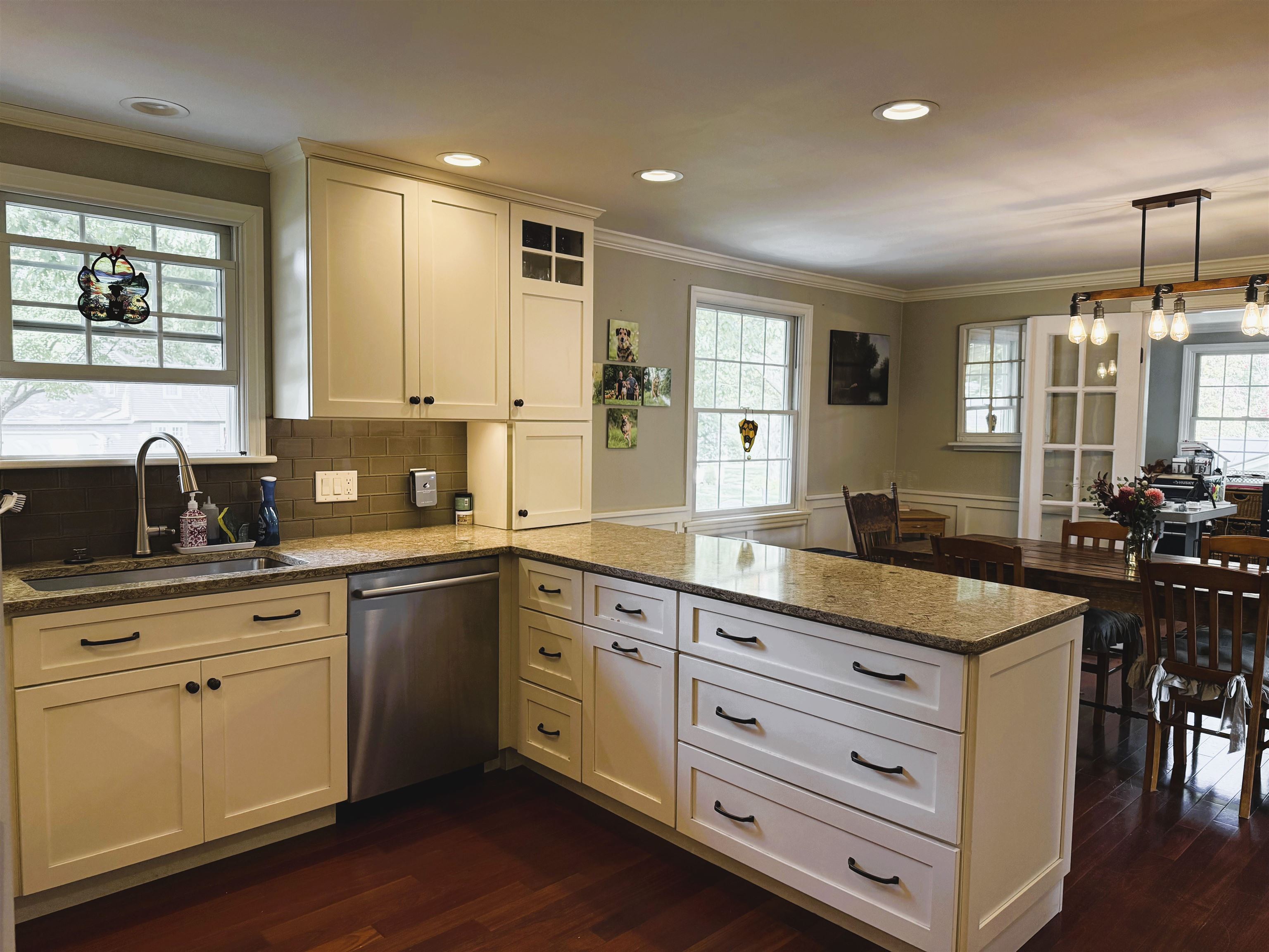 Welcome to your dream home in an ideal suburban setting! Nestled on a generous corner lot, this beautifully updated residence offers the perfect blend of comfort, style, and convenience with a three-car garage, 3 bedrooms, and 2 full baths. Interior highlights include a front mudroom, a bright and open living spaces with natural light pouring through sizeable windows throughout, a modern kitchen with quartz counters open to the dining room, and an effortless flow to the living room and an additional flex space. Venture out to your gorgeous eastern exposed back deck! The master bedroom has a new bath complete with tiled shower, dual sinks, and jetted tub. The half bath has been enlarged and converted to a full bath with tub. The under-home level offers a 3-car garage bordered by an interior mudroom storage area, the utility room with a sink, and 2 additional semi-finished rooms for flex use! This home offers curb appeal and room to play, garden, and relax with a newly added full wood fence perfect for safety and privacy. The expansive driveway offers ample parking space. This suburban neighborhood atmosphere with tree-lined streets and welcoming surroundings, is conveniently located near the UVM Medical Center, schools, restaurants, shopping, parks, UVM college, everyday amenities, with easy access to commuter routes while maintaining a warm residential feel. This home is more than just an address, it’s a lifestyle.