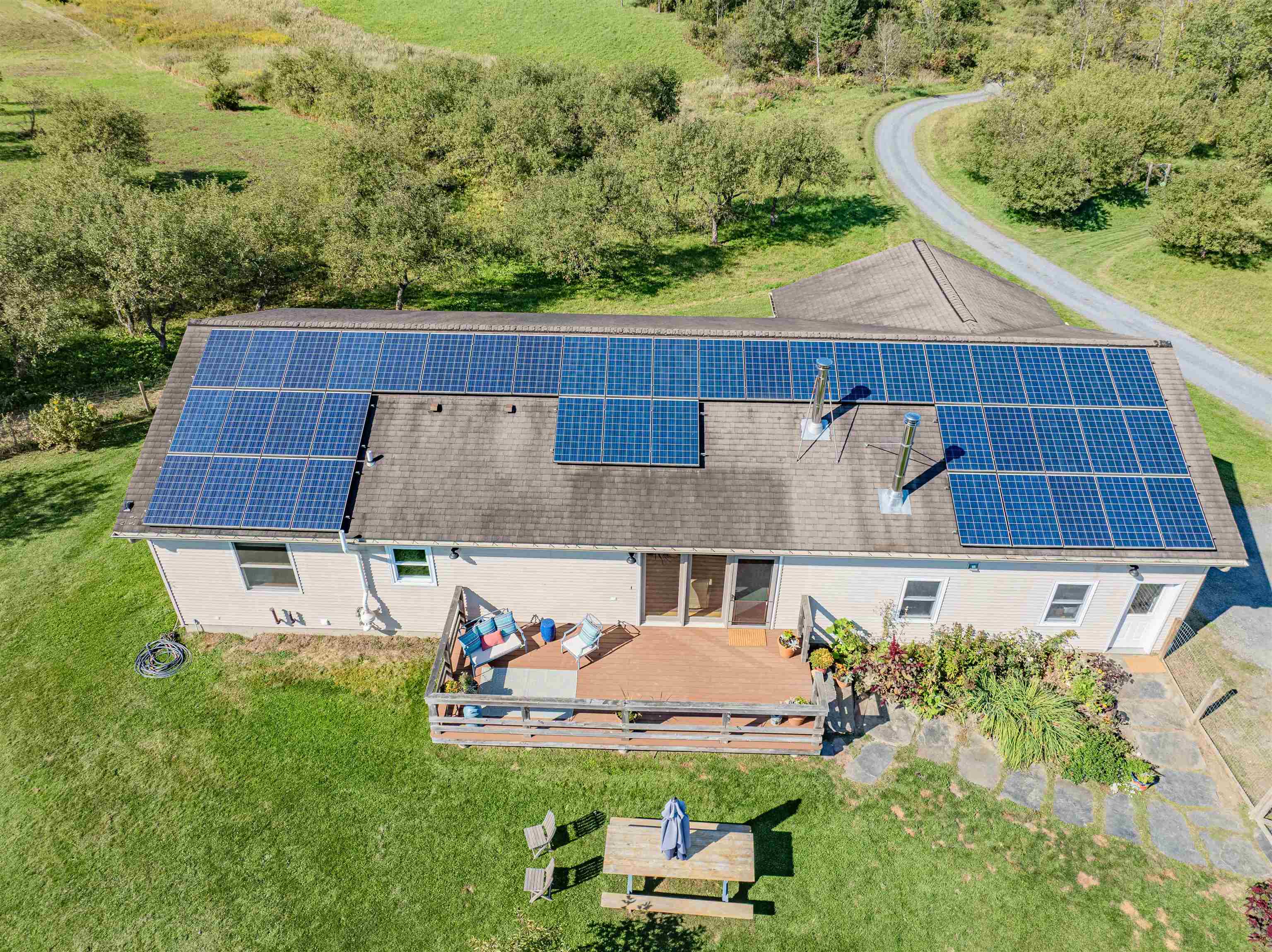 Welcome to your country retreat! Nestled on 3.79 acres with sweeping mountain views, this beautifully updated 3-bedroom, 2-bath home offers the perfect blend of charm, comfort, and sustainability. The property boasts extensive perennial and herb gardens, an apple orchard as well as plums, cherries, elderberries, grape vines, currents, blueberries, raspberries, and blackberries. A new barn, poultry coop, and a greenhouse — ideal for hobby farming, gardening, or simply enjoying the outdoors. Step inside to an inviting open layout where natural light pours in through beautiful oversized windows. The home features a high-end country kitchen with stone counters, farmhouse sink, new appliances, a custom pantry and large island seamlessly flowing into the dining and living spaces. The living room’s cozy woodstove creates a warm gathering spot, while the sunroom provides a bright, relaxing space to soak in the views year-round. The main level has hardwood floors throughout and includes an updated full bath with convenient laundry. Downstairs, the finished basement adds valuable living space with a third bedroom, full bath, and flexible area for guests, office, or recreation. Thoughtfully equipped for modern living, the home features solar panels to offset electricity costs, high-speed cable internet and is generator-ready for peace of mind. Whether you’re looking for a country lifestyle or a peaceful home with modern amenities, this property delivers it all.