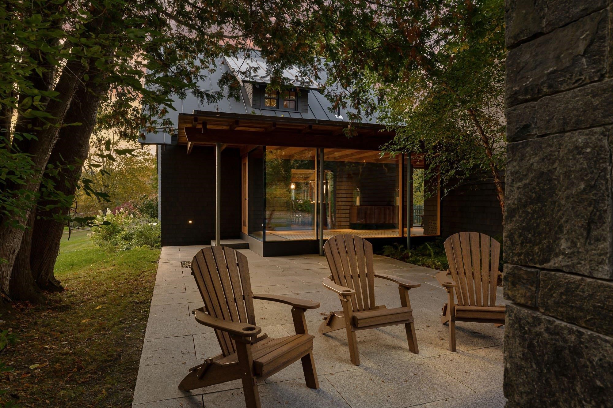 Originally built in 1900 and reimagined through meticulous renovations, this distinguished home blends timeless Vermont charm with modern sophistication. Details are crafted with care—installing bespoke built-ins, hand-selected hardware, and refined fixtures that elevate each room. The gourmet, open-concept kitchen invites gatherings around its expansive island and flows directly into a grand dining room. A striking stone fireplace anchors the space, creating a dramatic focal point for entertaining or enjoying quiet evenings. A modern addition included a stately two-car garage with a private primary suite above. This gorgeous, window-filled space is complete with a full bathroom with a steam shower, soaking tub, walk-in closet, and kitchenette. Owners can enjoy their morning coffee right from their bedroom suite, or use the space to welcome guests in style. Set back from the street, the home provides peace and privacy while keeping you in the center of Stowe Village. Step outside and stroll to the public library, upscale shops, and acclaimed dining—all just moments from your front door.