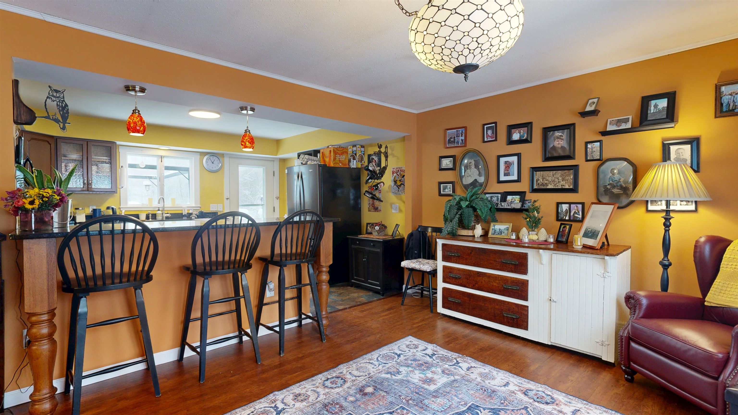 Set on 2 private acres bordered by an open field and gentle hills, this wonderful Underhill home offers the perfect blend of comfort, charm, and everyday convenience. The open floor plan creates an easy flow from the remodeled kitchen—featuring granite counters and black appliances—to the inviting dining and living areas, ideal for gathering with family or friends. Upstairs, two comfortable bedrooms and an updated full bath provide a restful retreat, while updated flooring in the hallway, living room, and kitchen enhances the home’s warm, cohesive style. The finished walkout lower level adds flexible living space with a family room, additional bedroom, and ¾ bath—great for guests or a home office. A cozy pellet stove keeps winter nights warm, while front and back decks invite you to unwind outdoors and enjoy the gardens, open field, woods, and Vermont’s natural beauty. The spacious yard offers berries, perennials, and plenty of room for play or gardening, along with a large shed for projects. A two-car garage with workshop space and an additional carport/woodshed add practical convenience. Major updates include a new roof and a high-efficiency propane boiler/hot water system, both installed in 2018. Enjoy the best of Vermont living just 20 minutes from Smugglers’ Notch Resort and an easy commute to Essex or Burlington—where adventure, work, and relaxation all come together.