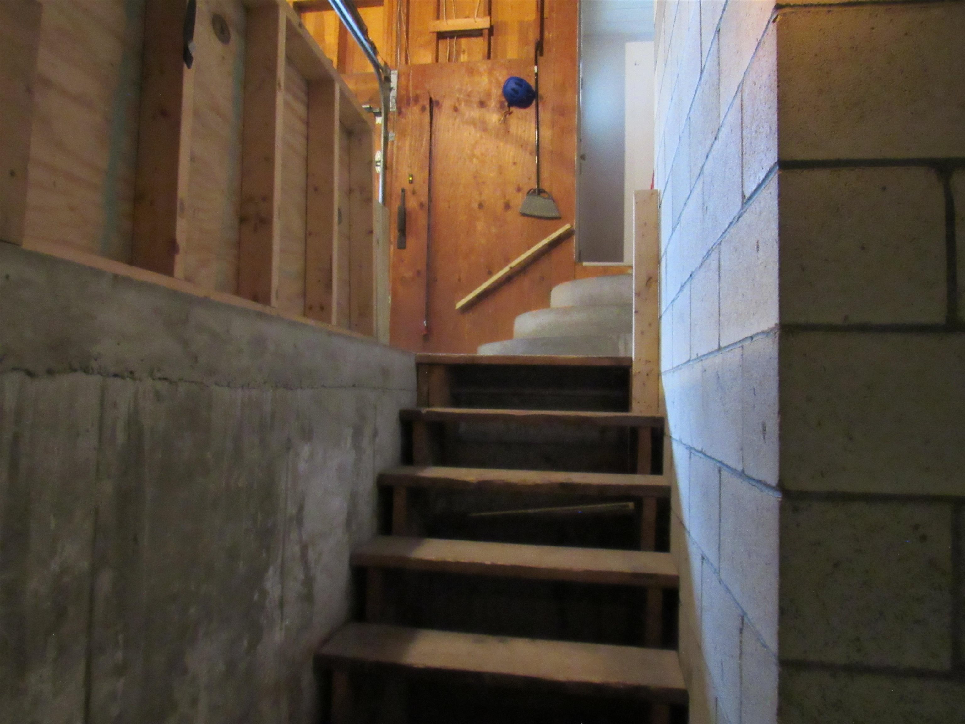 - Concrete, Concrete Floor, Full, Interior Stairs, Storage Space, Unfinished