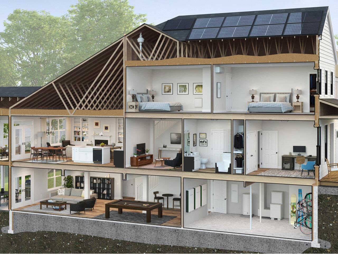 The Oak Townhome is just the right size with 3 bedrooms, 2 ½ bathrooms, and 1, 875 square feet of living space. Light-filled featuring a wrap-around porch accessible from the main living level. The oversized kitchen island provides casual convenience alongside a formal dining area adjacent to the generous living room. A walk-in pantry enhances kitchen storage. The 2nd floor offers an owner’s suite with an upgraded tiled walk-in shower, double sinks, walk-in closet and 2 additional large bedrooms. The full lower-level basement offers ample storage or the potential for additional living space. With abundant natural light, a distinctive roofline and seamless indoor-outdoor living, The Oak is both stylish and inviting. As always at Hillside East, air conditioning and Trex decking is standard. Located in South Burlington in one of the first 100% fossil fuel & carbon-free neighborhoods in the country! Every home offers a resiliency package including solar, Powerwalls for renewable energy storage, an EV car charger, plus carbon-free heating and cooling via eco-friendly ducted electric heat pumps. Prices subject to change. Photos are likeness only.
