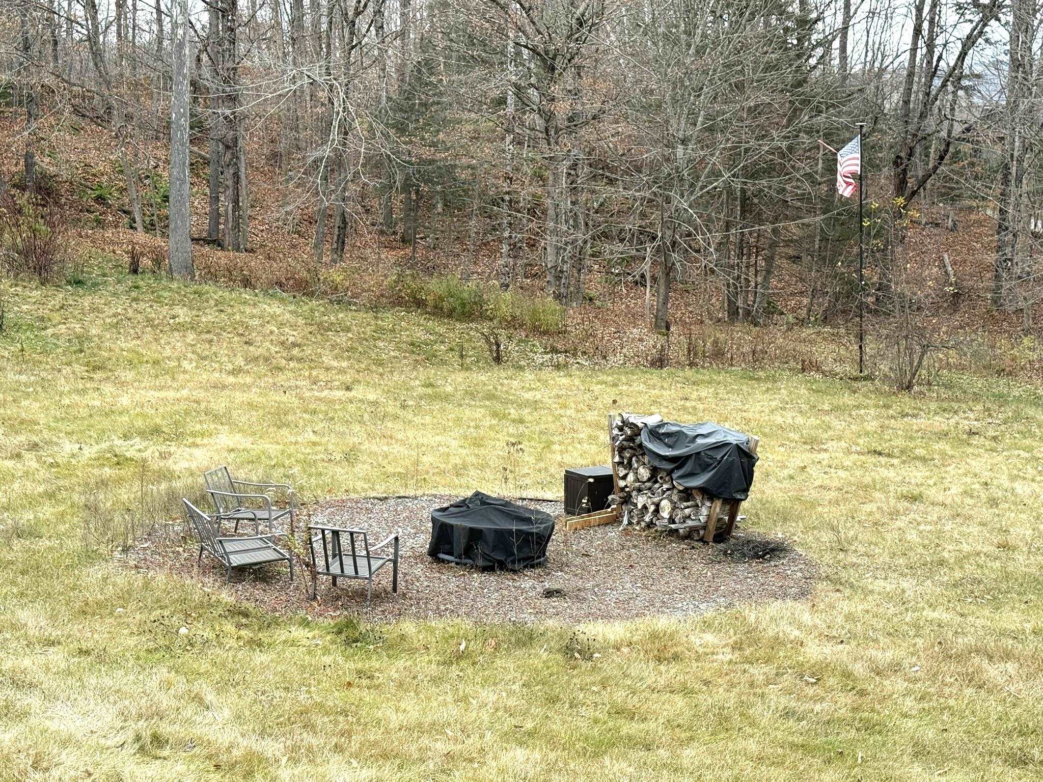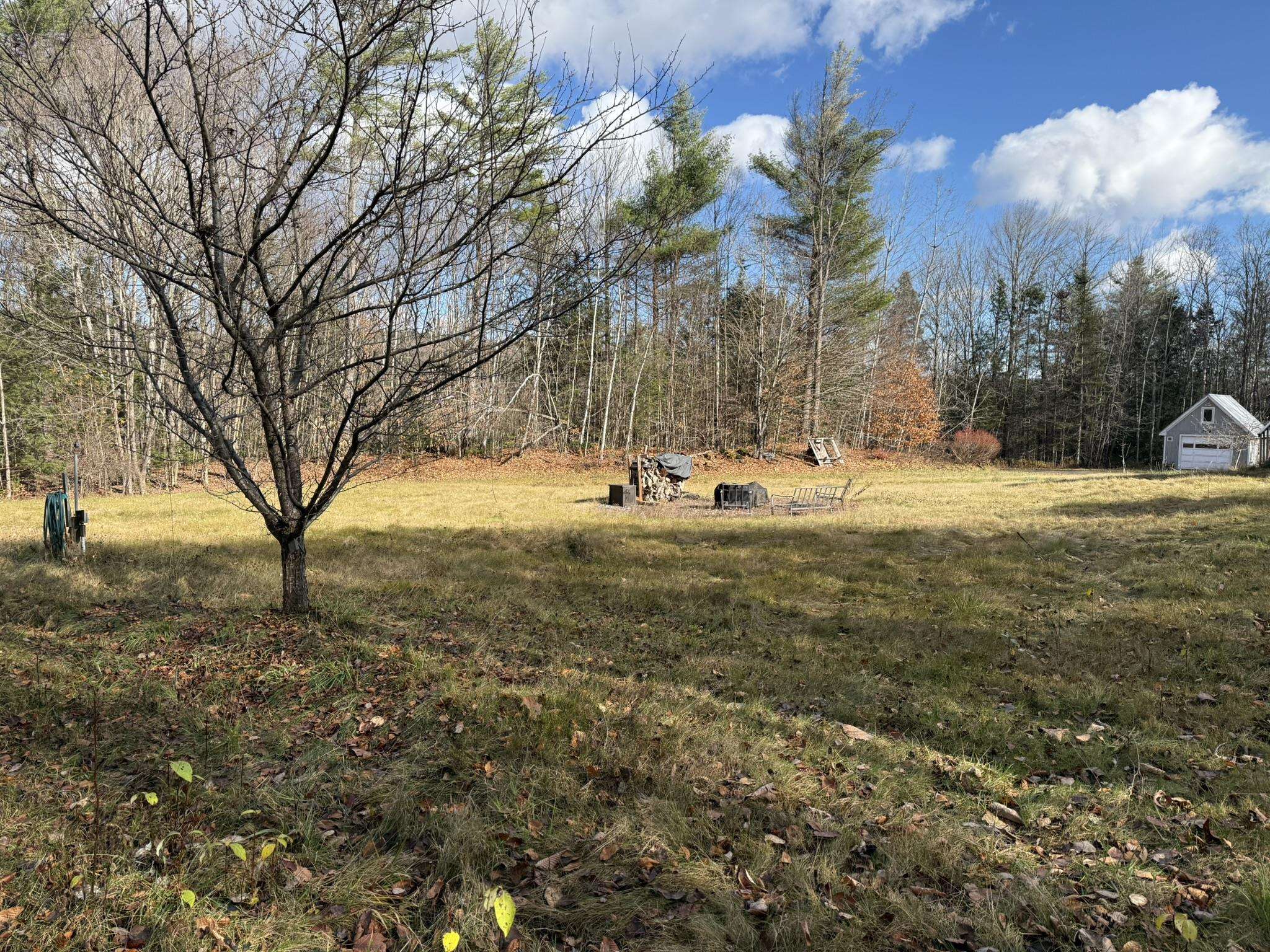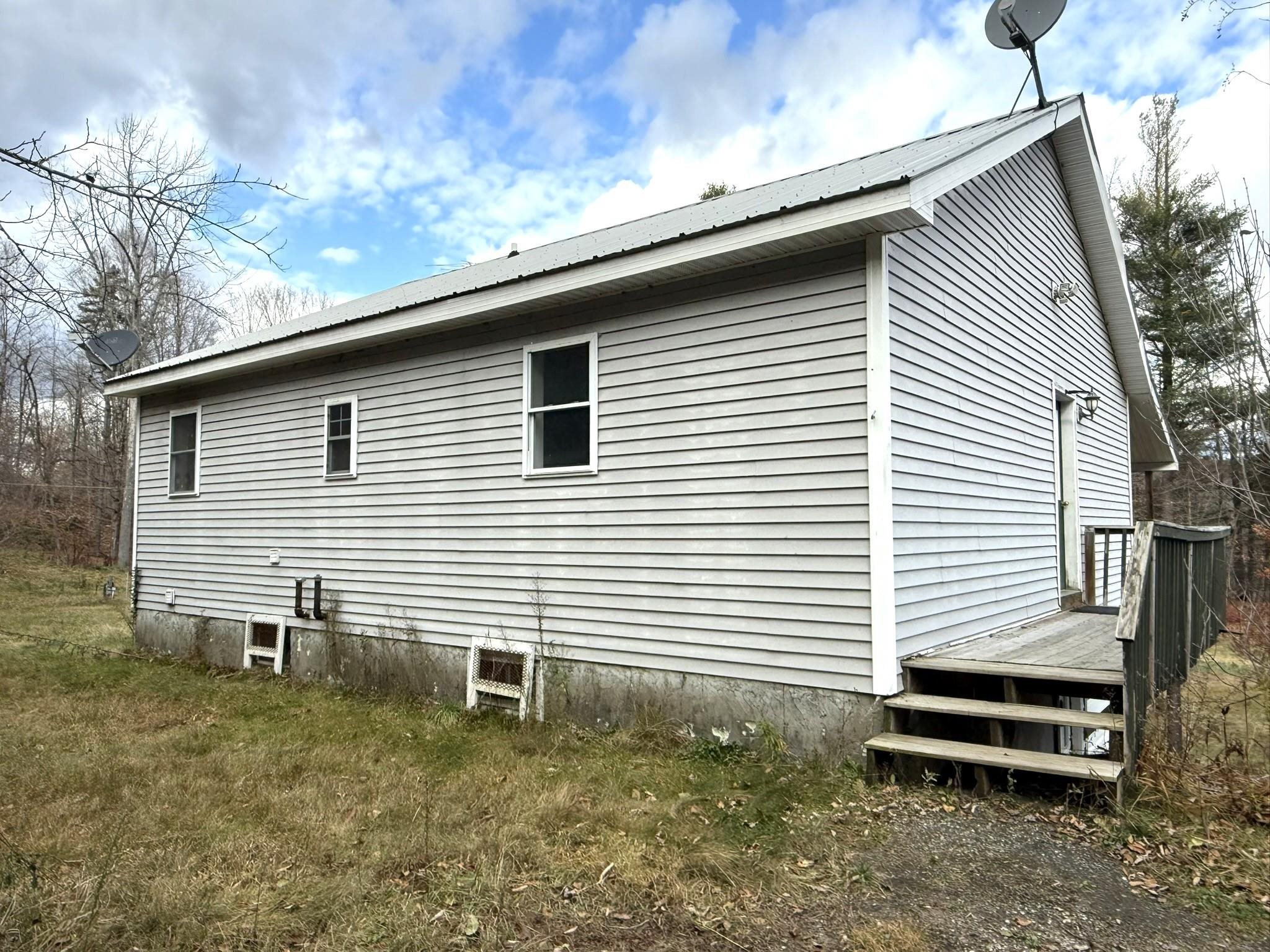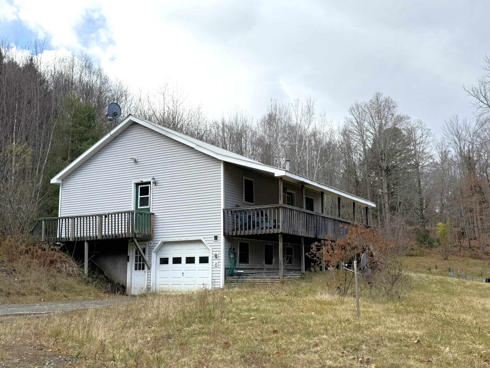 Tucked behind a cluster of trees on a quiet, town-maintained dead-end gravel road, this inviting Ranch home offers comfort, functionality, and country charm on 3 acres of open and wooded land. The spacious open floor plan combines the large kitchen/dining, and living areas—ideal for entertaining or relaxing by the warm glow of the beautiful gas fireplace. A full-length covered porch stretches across the front, providing the perfect spot to enjoy peaceful mornings or evening gatherings outdoors. The main level also features two bedrooms and a full bath with convenient laundry. The full basement expands your living space with a welcoming recreation room complete with a bar ~ perfect for gatherings ~ plus a full bath, utility room, and a one-car garage ~ which could be finished off as additional living space if you choose. Practical touches include oil hot water baseboard heat and wiring for a generator, offering comfort and peace of mind year-round. Outside, you’ll find a separate one-car garage with extra storage, a charming mini cabin for guests or hobbies, and plenty of room for outdoor enjoyment. Entertain around the firepit, make use of the outdoor electricity hookup and water spigot, take in the beauty of your private setting or use the sunny, open areas for planting gardens that you have been wanting. This property combines rural tranquility with modern convenience—a wonderful place to unwind, entertain, and call home!