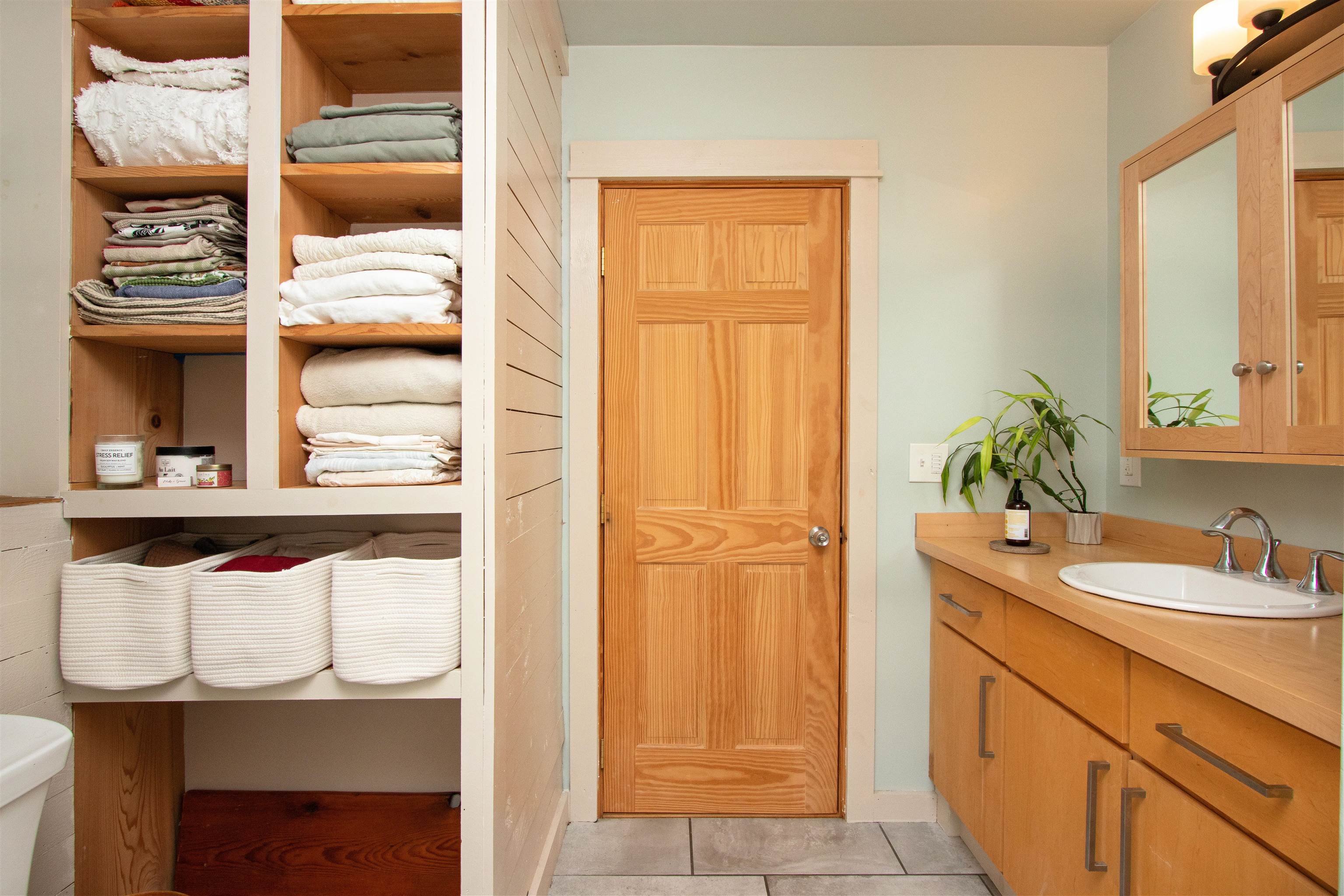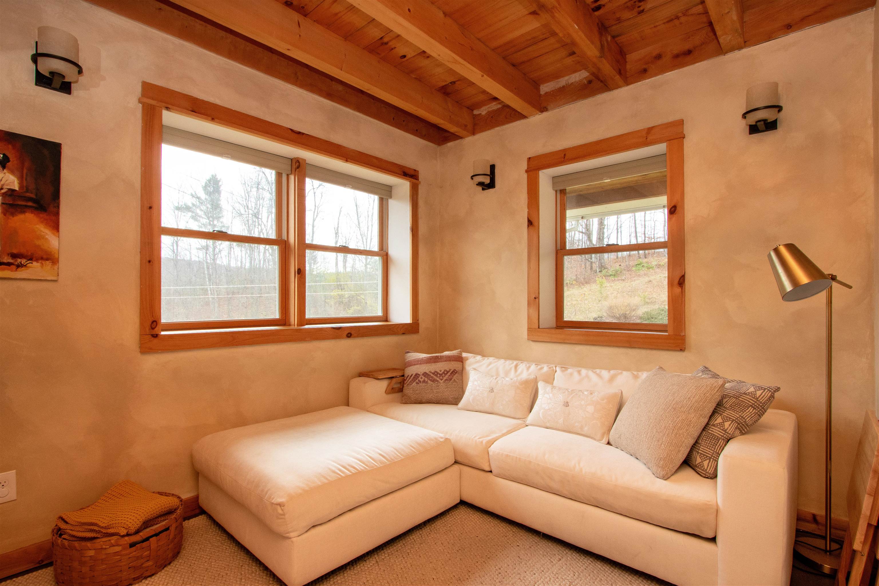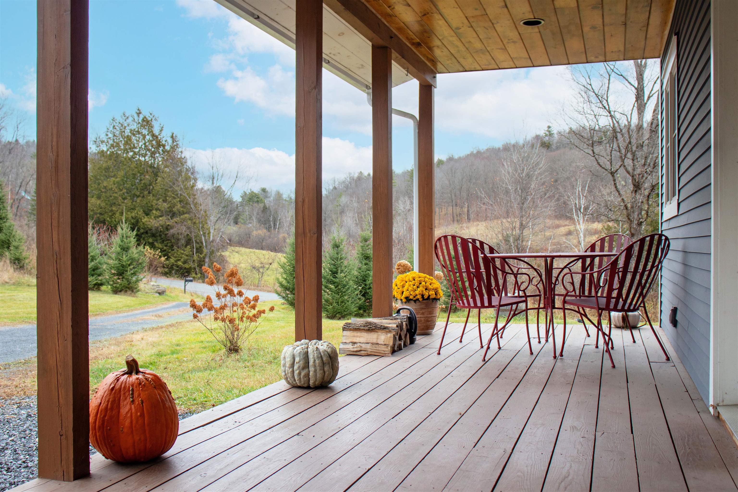 Built in 2017 with thoughtful design and modern efficiency, this Williamstown home is a cool blend of modern meets Vermont charm. A welcoming wrap-around porch sets the tone, offering a spot to relax and take in the peaceful surroundings. Inside, the open layout is filled with natural light, warm wood accents, and exposed timber framing that gives the space its inviting feel. The kitchen features a central island with a stove, plenty of counter space, and windows overlooking the yard, and adjacent to a bright dining area. The living room is equally special with built-in shelving and beautifully finished limewash walls that add subtle texture and character. A cozy, high efficiency soapstone wood stove anchors the entryway, and a half bath completes the main level. Upstairs you’ll find three lovely bedrooms, a full bath, and convenient second-floor laundry. Built with energy efficiency in mind, the home features double-studded walls, a heat pump and Rinnai heater for year-round comfort. Outside, enjoy a yard featuring stone walls, flowering fruit trees, perennial gardens, and evergreens that offer year round privacy from the road. You’ll also find a handy shed and plenty of space for vegetable plots and play. Set in Williamstown, just a short drive from Barre and Montpelier and highly accessible to I-89, you’re under an hour to both Lebanon and Burlington, and proximal to New England skiing, mountain bike, and hiking destinations.