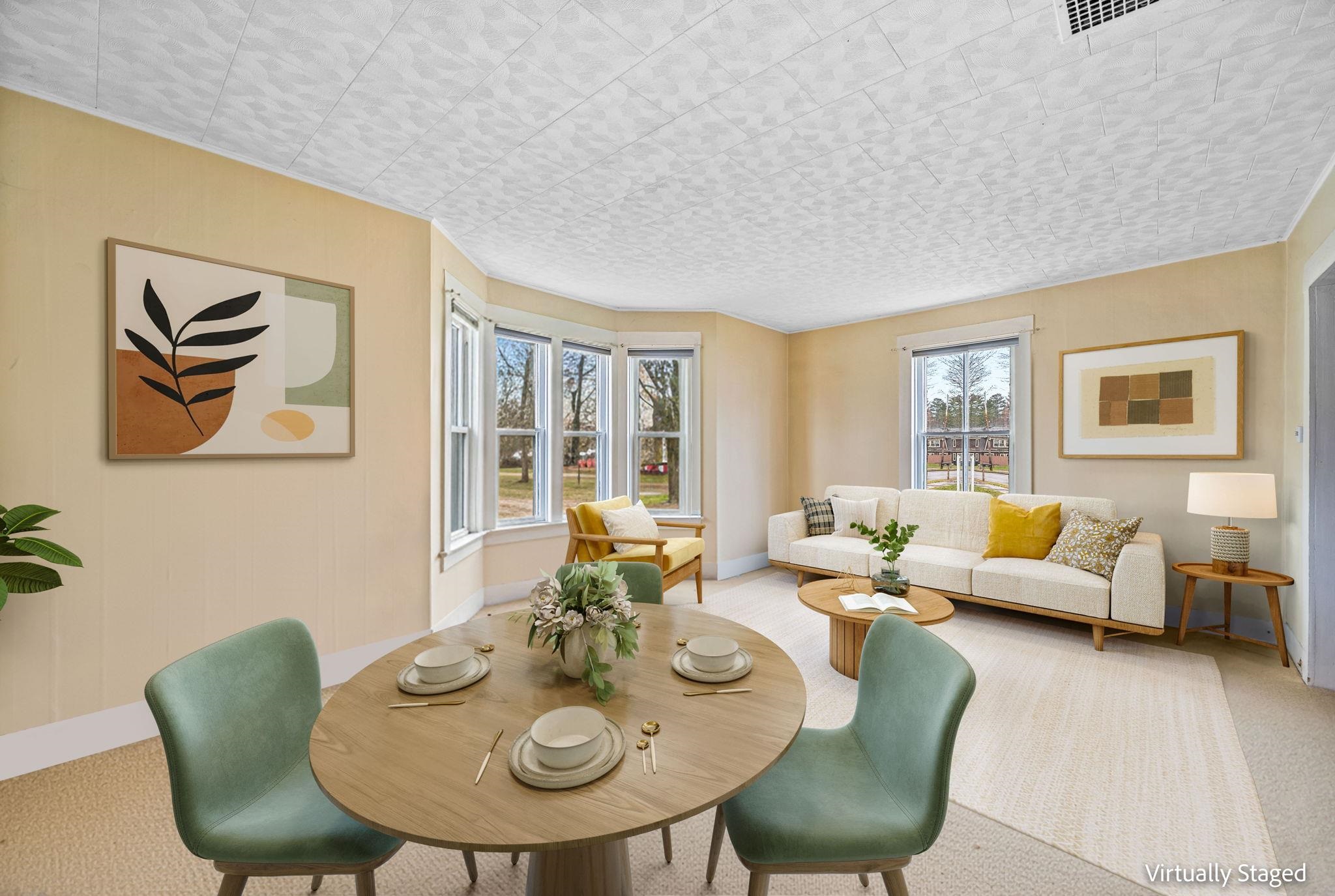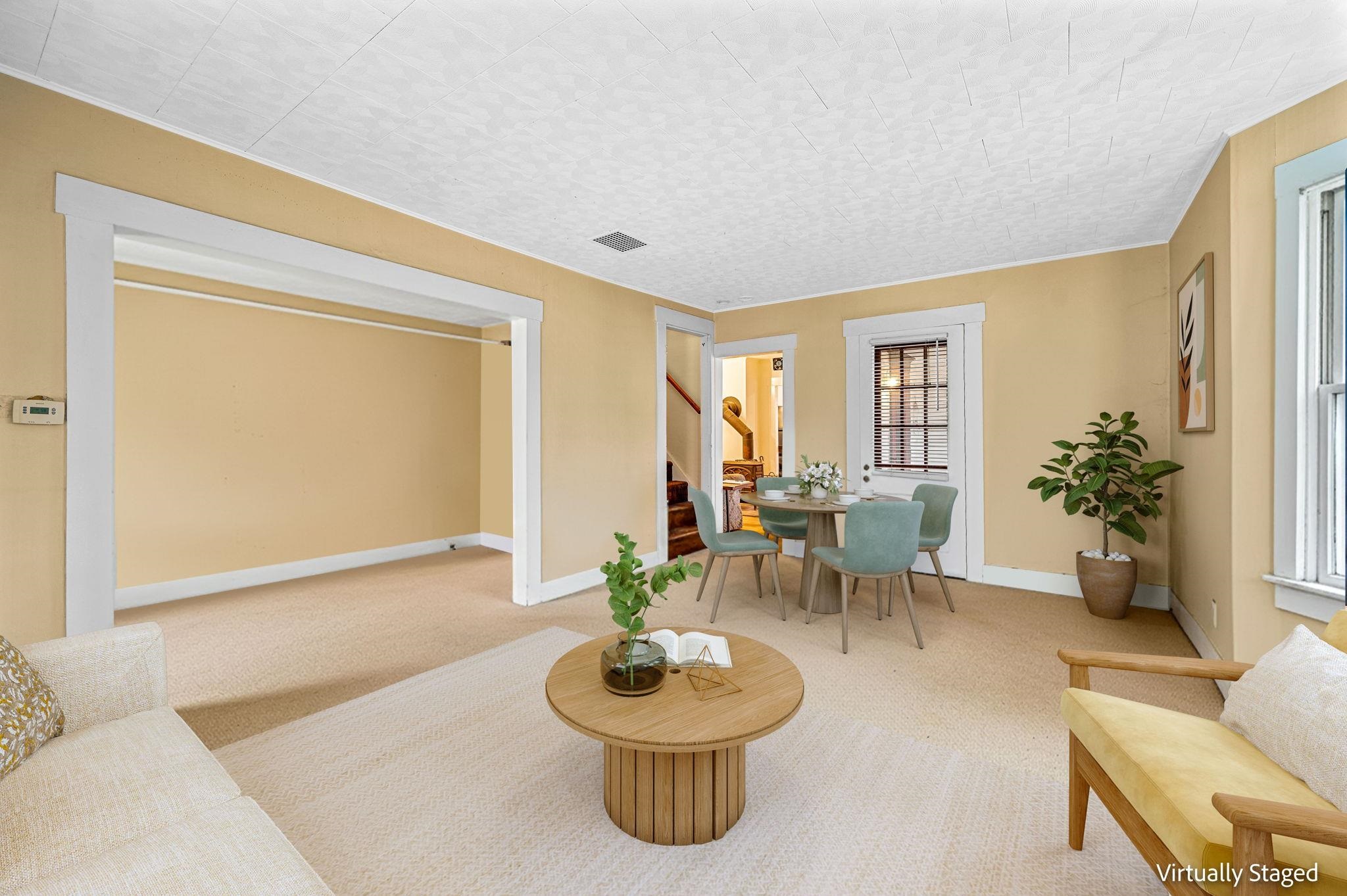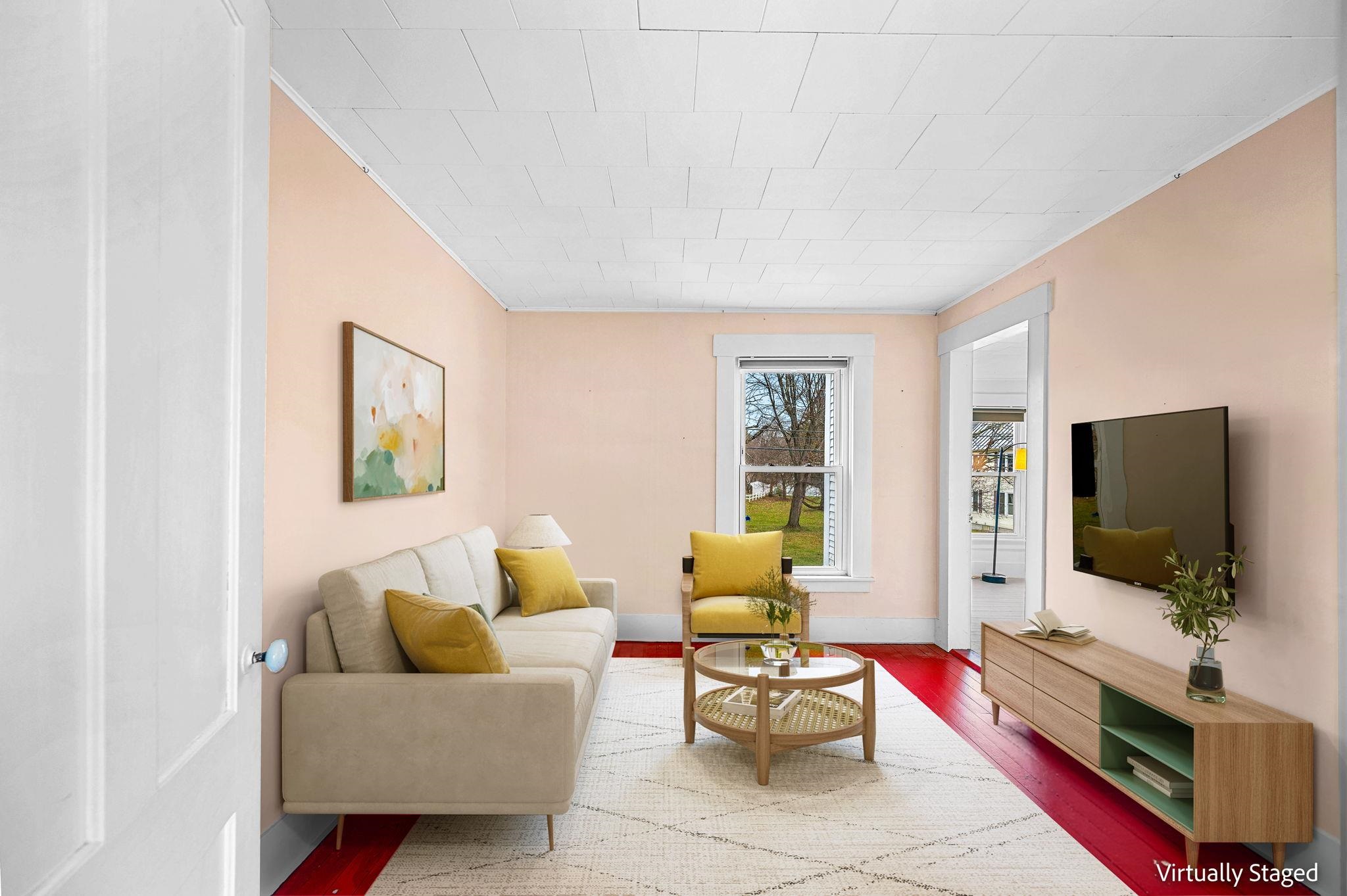 Charming 3-BR, 2 car attached garage and 2 BA home with all the amenities of village living right out your front door! This home features spacious rooms and a cozy woodstove, perfect for enjoying the ambiance on those cold winter nights. The seasonal porch offers a perfect retreat for relaxation and reading. The large living/dining room is a terrific gathering spot for entertaining or simply unwinding. This classic home features three bedrooms along with a family room/den located on the second floor. This spacious area offers versatility to adapt to your lifestyle—whether you need a dedicated office space, a playroom or an additional space for relaxation. Situated on a corner lot, everything that Morrisville has to offer is close at hand, and many places within walking distance: Shopping, dining, golf, schools, hospital, and more. An easy drive to Stowe, Lake Elmore, several ski resorts, and near walking trails, recreation is easily accessible from this fantastic location. Take a look today and discover the convenience of village living! A wonderful place to call home!