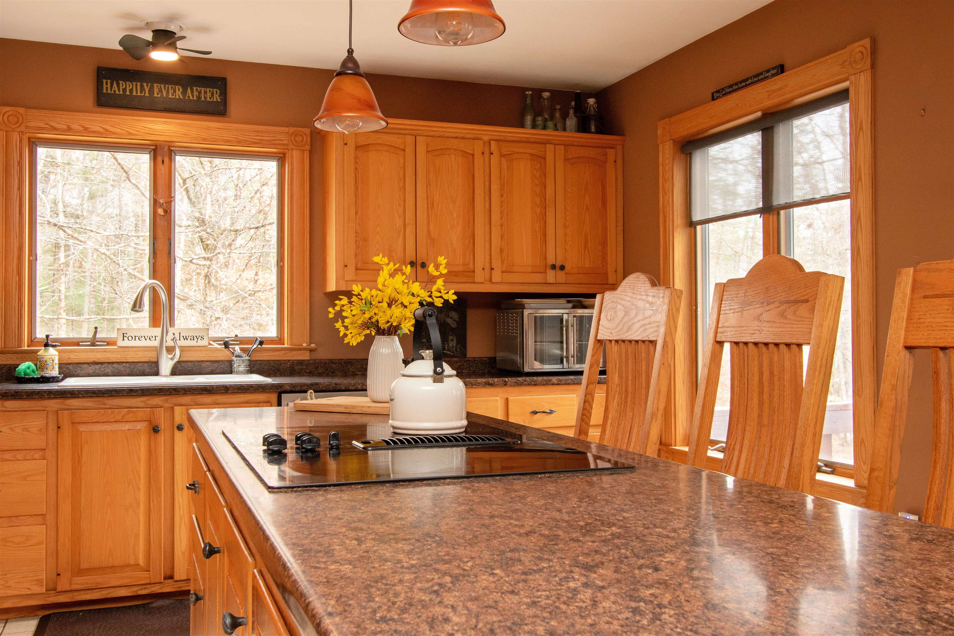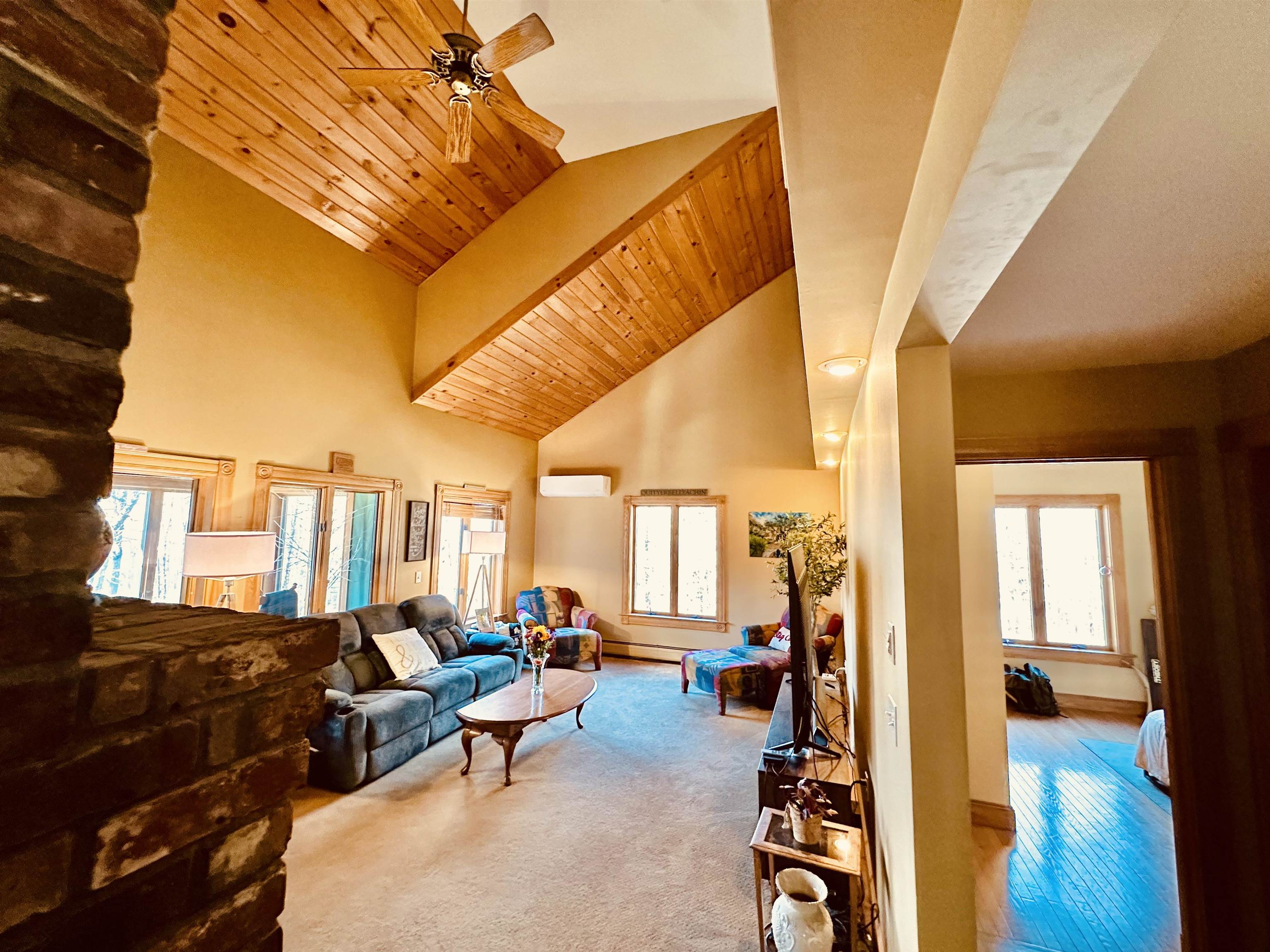 Welcome to this classic, Vermont “forever home” that feels like a comfortable fit from the moment you turn into the tree-lined driveway. This one has it all… 9.81+/- acres of rock-walled, Waterford land, conveniently located between Littleton and St. J, “school choice” including St. Johnsbury Academy. This Vermont energy efficient home with new 2024-25 insulation, heat-pump hybrid hot water heater, and mini-split heating and cooling unit is ready for all seasons. It also offers 3 levels of living space and an open concept layout that unites contemporary style, vaulted ceilings, and practical functionality… including 4 spacious bedrooms, a truly great “great room, ” a striking, 2 story fireplace at the center of the home, a wonderful eat-in kitchen with ample storage & beautiful cabinetry, as well as an oversized island that was made for gathering and memory-making. In addition, this home offers a formal dining room that seats 12 comfortably for special occasions; a charming and airy loft overlooking the great room, a dedicated office space, a four-season, fully-heated sunroom that is perfect for morning coffee and evening sunsets; a walkout lower level (with limitless possibilities) that currently has a bedroom, a full bathroom, a den, a dedicated exercise space, a musician’s corner, and a children’s play area – plus additional storage. When you step outside the home’s front mudroom you will appreciate the paved driveway, 2 car garage, and and additional storage shed.