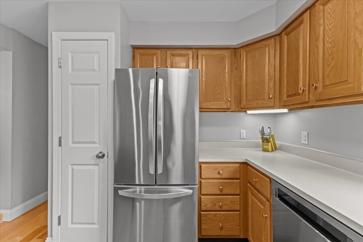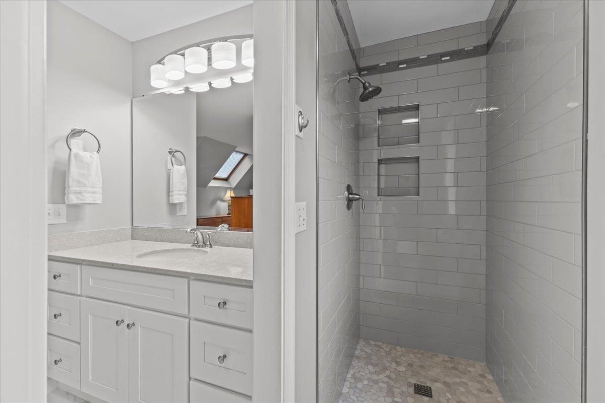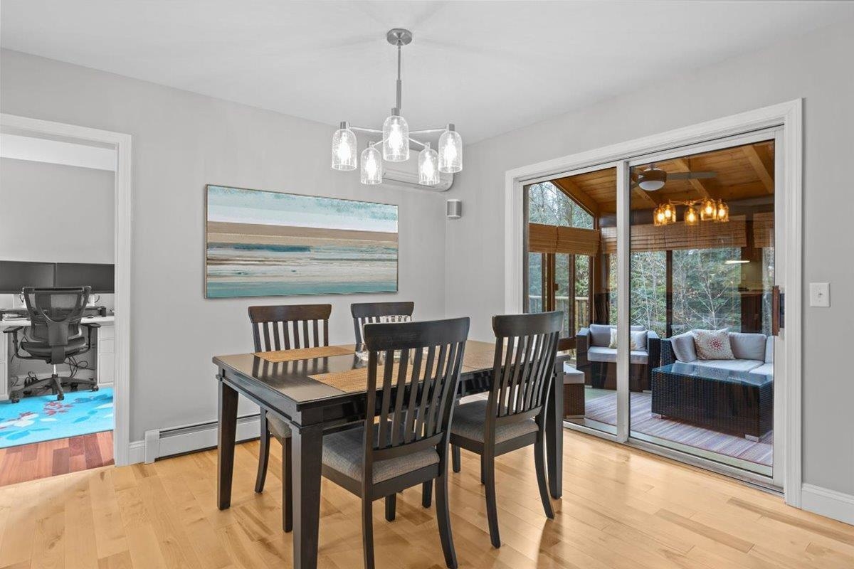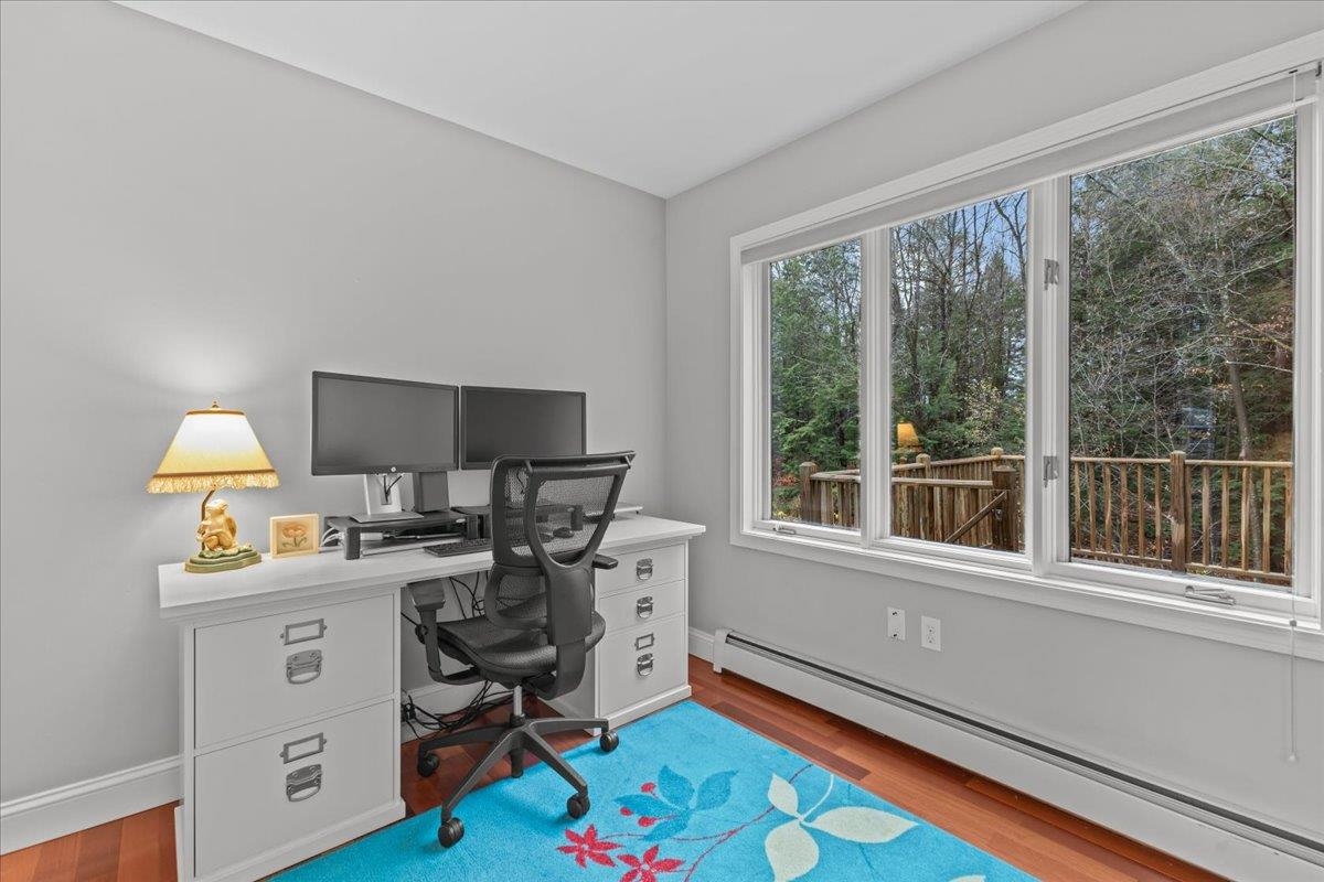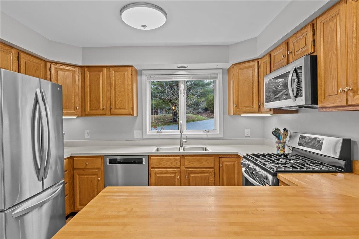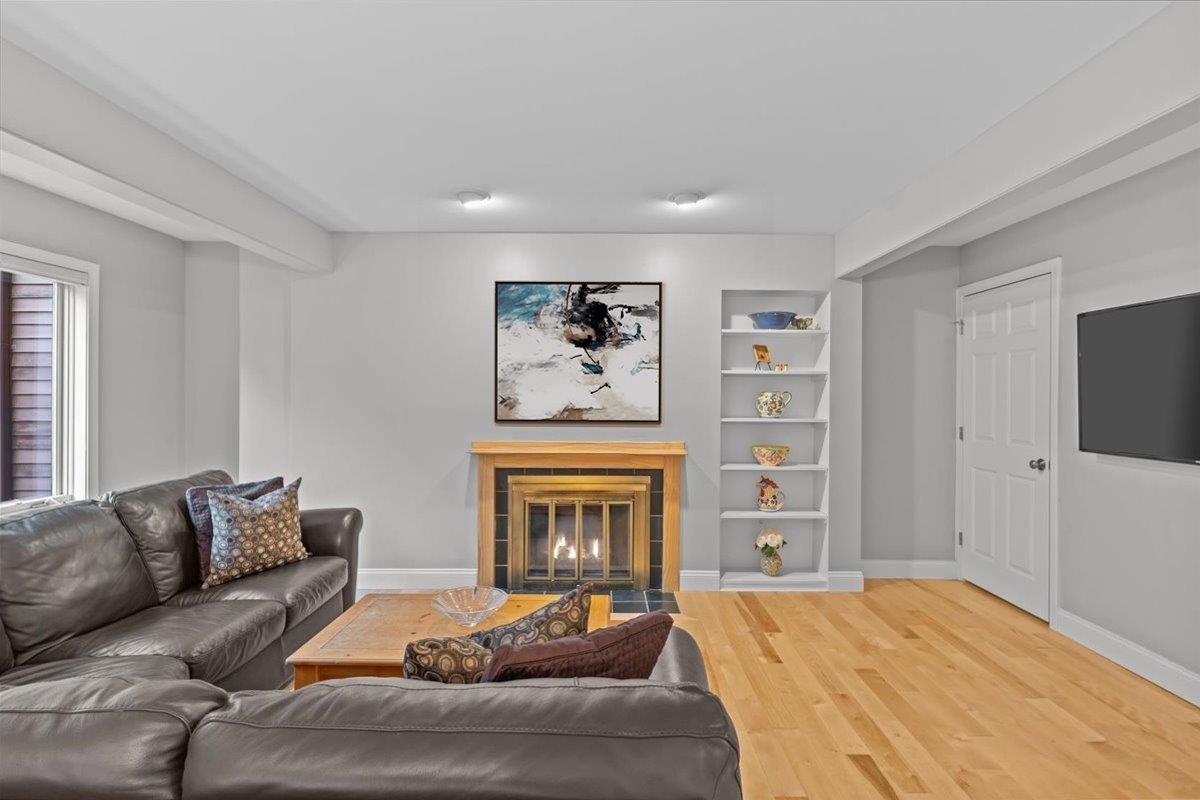 Experience refined comfort in this meticulously maintained end-unit townhome in the highly desirable Shelburne Gardenside community. This 2-bedroom, 4-bath, three-level townhome blends modern sophistication with timeless appeal. The welcoming foyer leads to an open-concept living & dining area with wood floors & a fireplace. Relax on the southwest-facing sunroom or private back deck overlooking wooded surroundings. The kitchen quite literally shines & features a breakfast bar, a pantry, and a brand new sink, combining style with functionality. A first-floor den with a half-bath is perfect for remote work or guests. Upstairs, the primary suite is a true retreat, with a thoughtfully renovated en suite bath with a tiled shower & a new glass shower door. There is also a cozy sitting area, a skylight that fills the room with natural light, and plenty of closet space. The beautifully updated guest bath & spacious second bedroom complete the upper level. The finished walkout lower level provides even more functional living space, including a ¾ bath, a dedicated laundry room, & endless storage space, enhanced with new recessed lights. Addtl highlights include a covered front porch with lockable storage, detached garage, new blinds, and light fixtures throughout. Enjoy acres of common land with walking paths, a pool & tennis/pickleball courts. Conveniently close to Shelburne Village shopping, dining, and community offerings. Move right in and embrace effortless, sophisticated living!