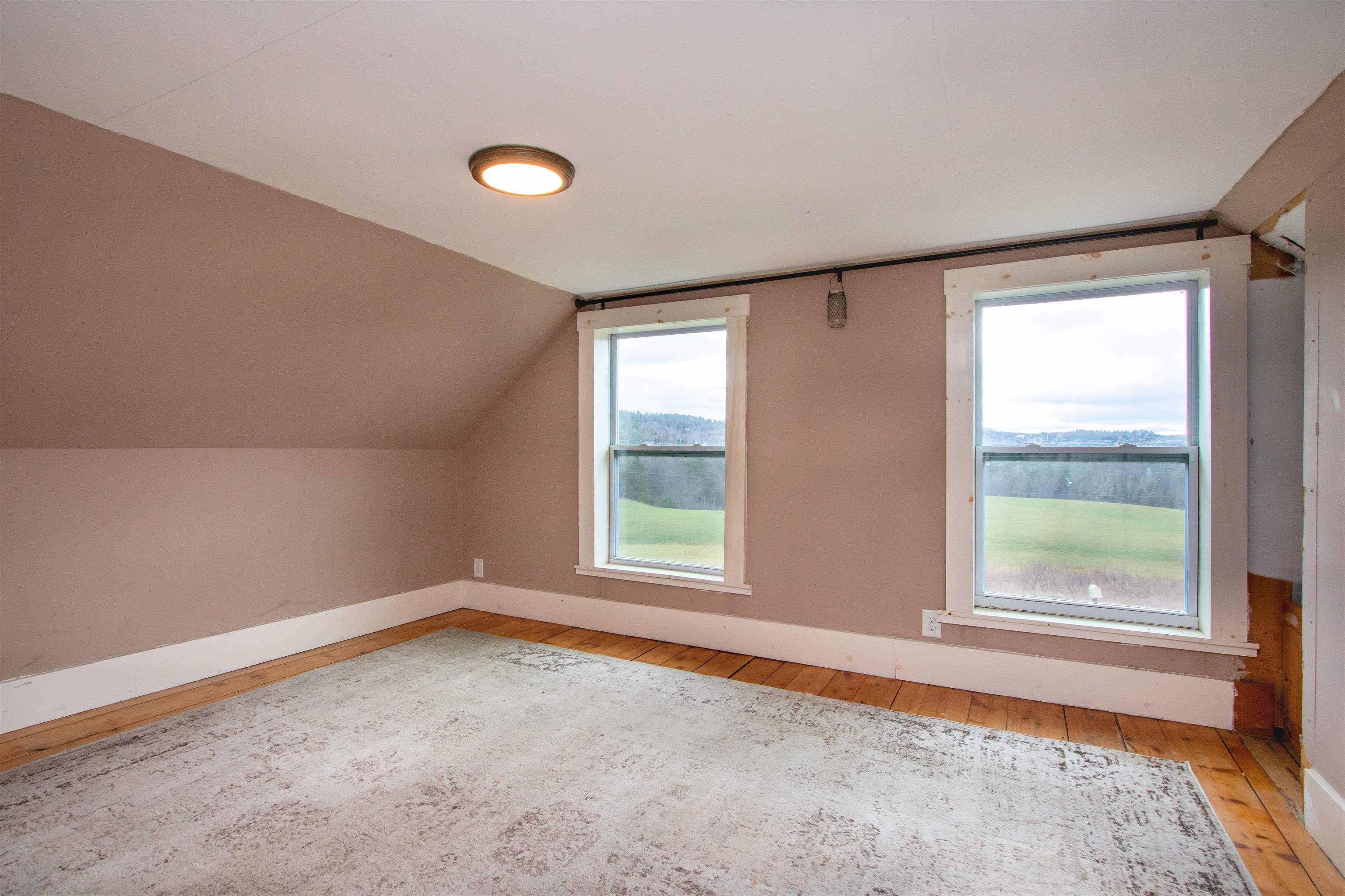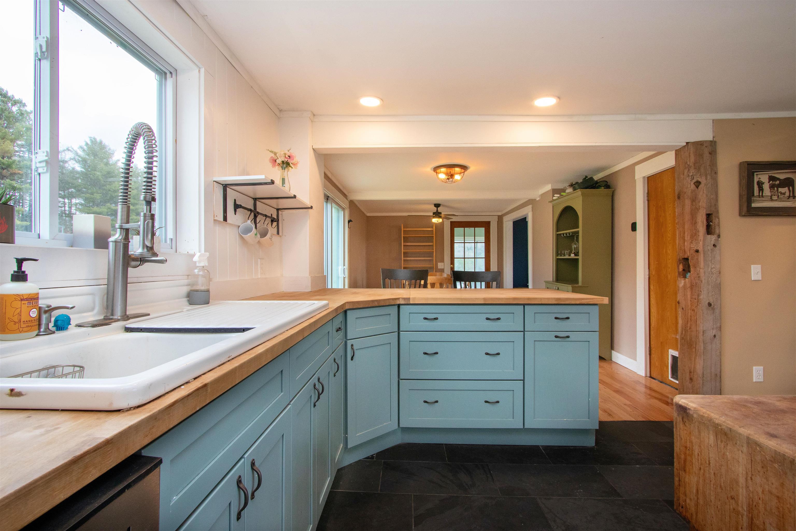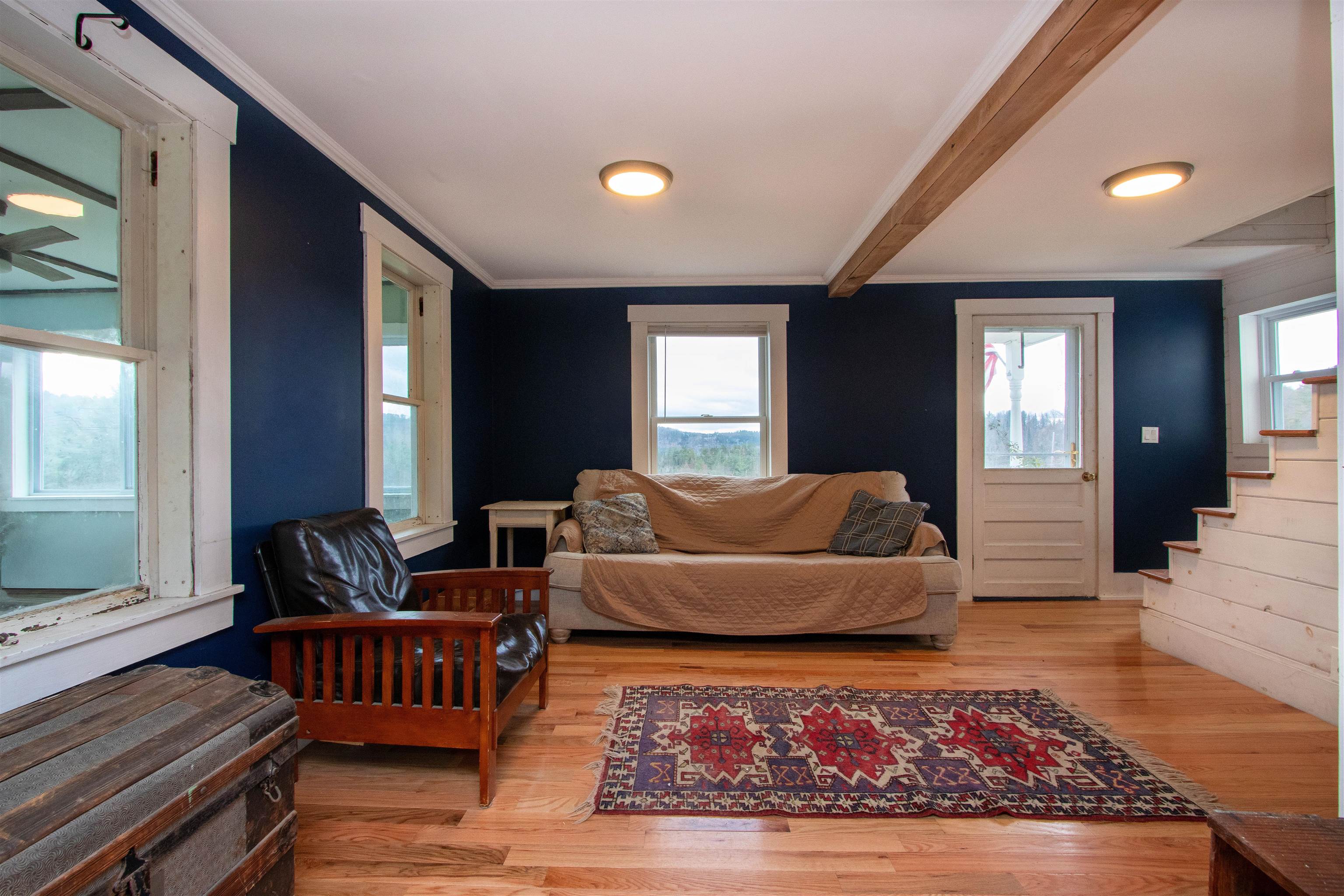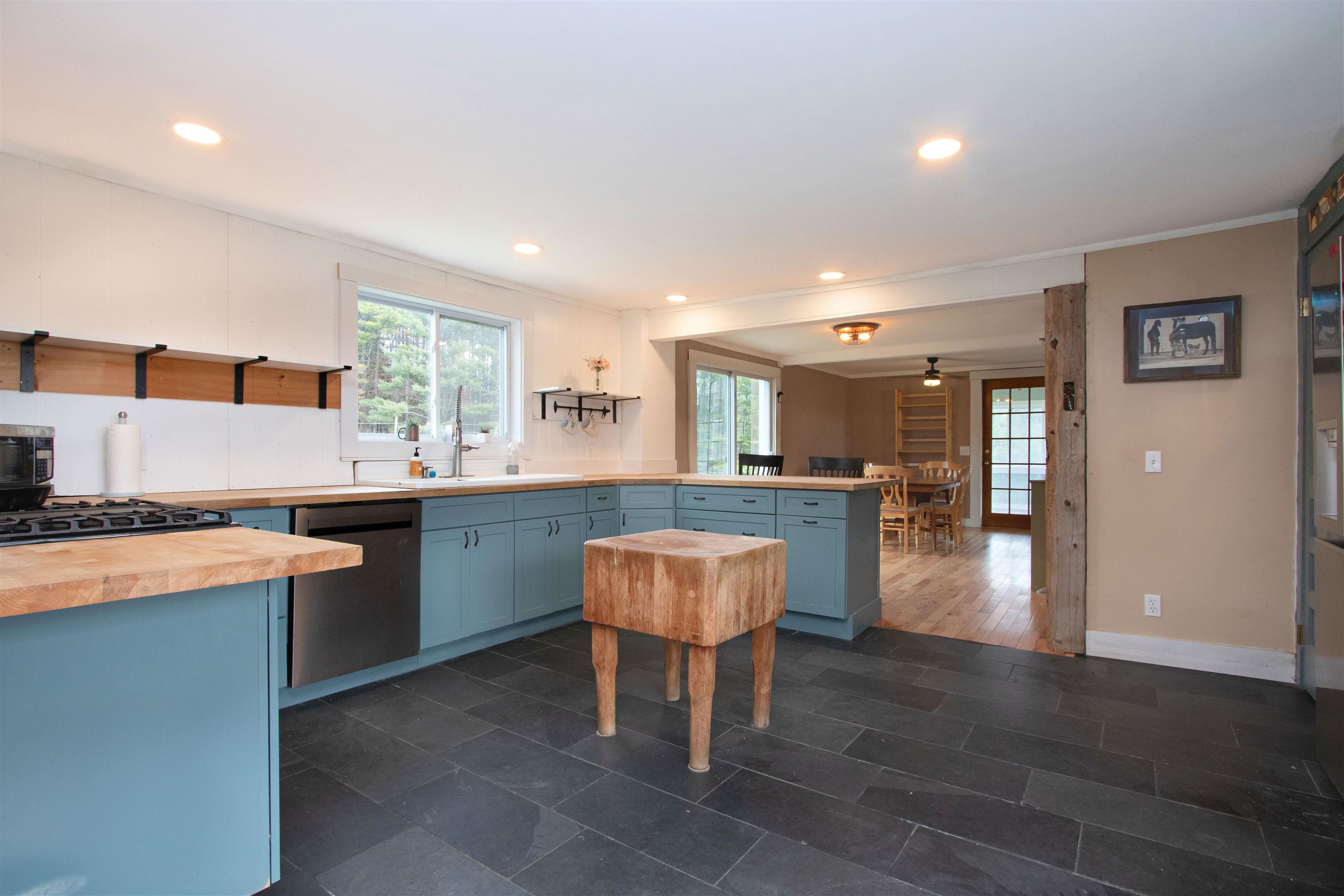 This super charming St. Johnsbury home sits on 4.25 acres and has been thoughtfully transformed by its owners, opening up key spaces and creating a very cool blend of modern comfort and vintage Vermont character. The home features a bright, open kitchen with slate floors, a breakfast bar, and a generous pantry, all flowing into the dining area with sliding doors leading to the backyard. Just beyond is an extra large enclosed porch, a favorite spot for seasonal meals, relaxing, and soaking in the pretty views. The main level also offers a comfortable living room, a mudroom with laundry, a handy dog washing station, and a full bath. Upstairs are three bedrooms and an additional full bath. An attached two car garage and a durable metal roof add to the home’s everyday ease. Outside, the small garage or barn with water and open spaces is ideal for those who enjoy having animals or want extra room for projects. The quiet country road gives a peaceful feel while still being just a few miles from Route 2 for an easy commute.