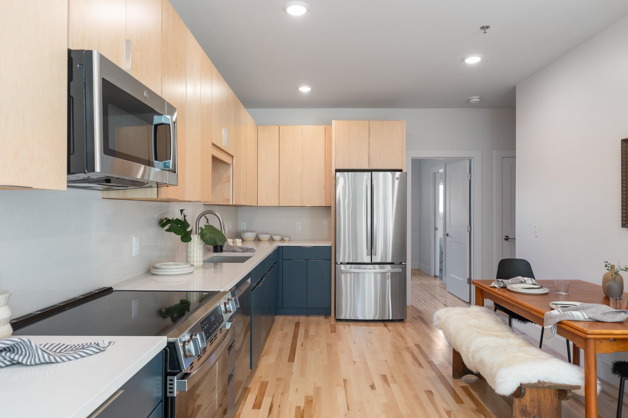 Welcome to 41 Adams Street, a rare, recently completed, new construction townhome perfectly positioned in the sweet spot between Church Street and the creative vibe of the South End. Inside, it’s all clean lines and natural light. Throughout, warm wood floors and tiled baths bring texture and tone, and nine-foot ceilings make a dramatic impact. The main floor flows easily from a sunlit living area to a streamlined kitchen, perfect for dining in, entertaining, or prepping food from your farmers market haul. A bedroom/office space on this level adds flexibility to accommodate your lifestyle. Upstairs, two additional bedrooms and baths offer private space to unwind, including a generous and serene primary suite. You’ll also have a deep two-car garage for gear, bikes, or extra storage, and two outdoor spaces to make your own: a private upper deck through a glass door, and a lower-level patio that opens onto a shared backyard. Built for the way people live now. Designed for today’s aesthetic. A tucked-away feel in a pocket of the city where everything’s walkable. Modern townhome living, done right.