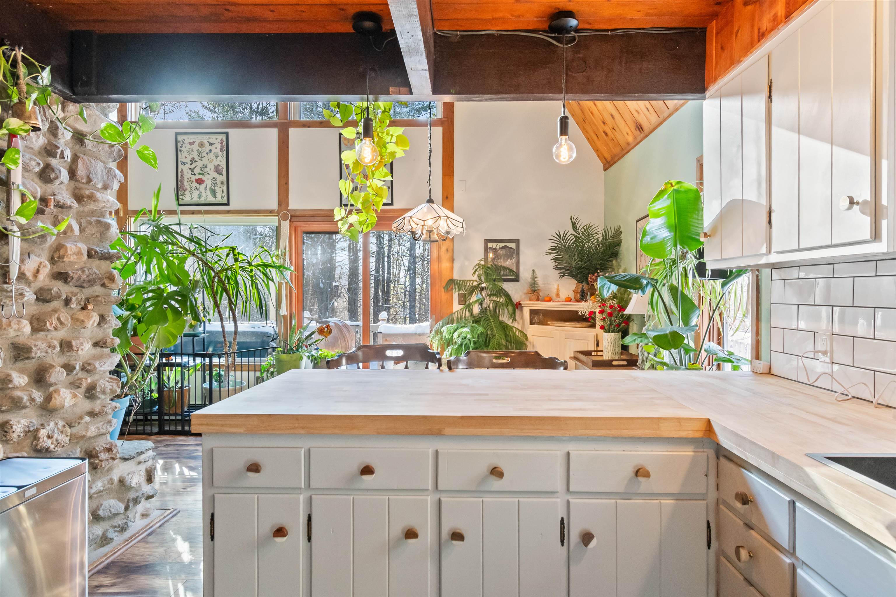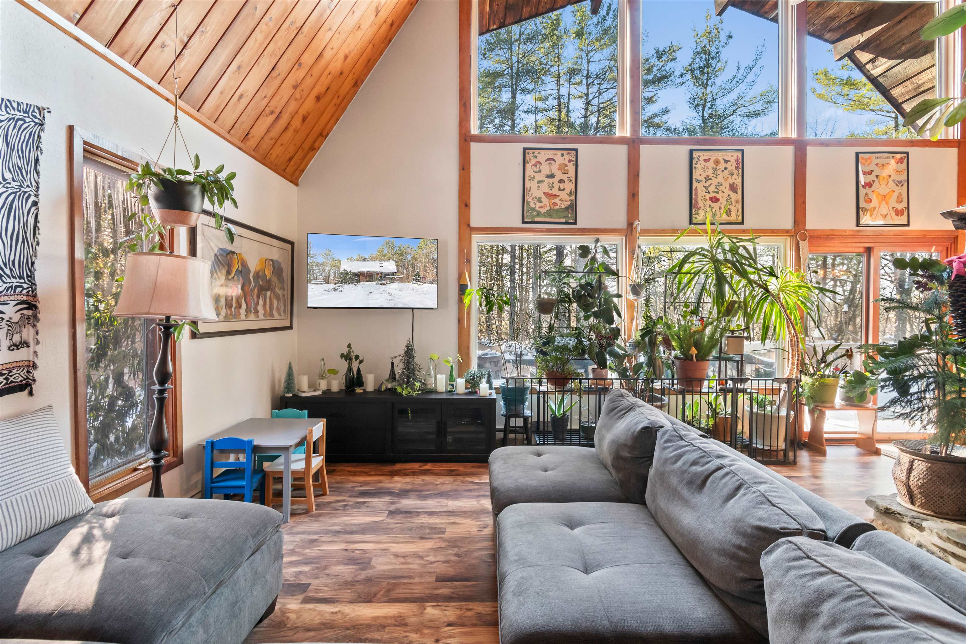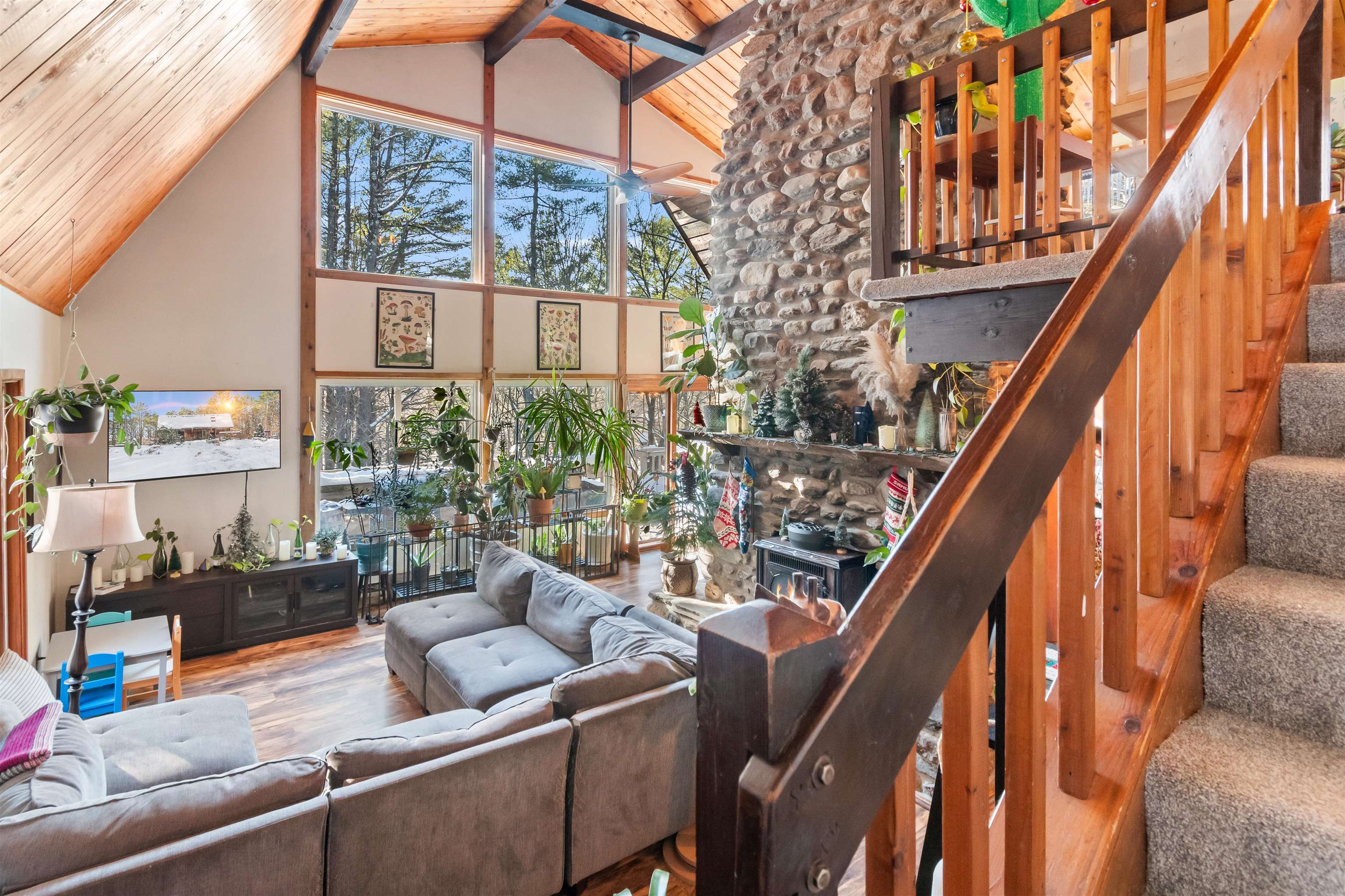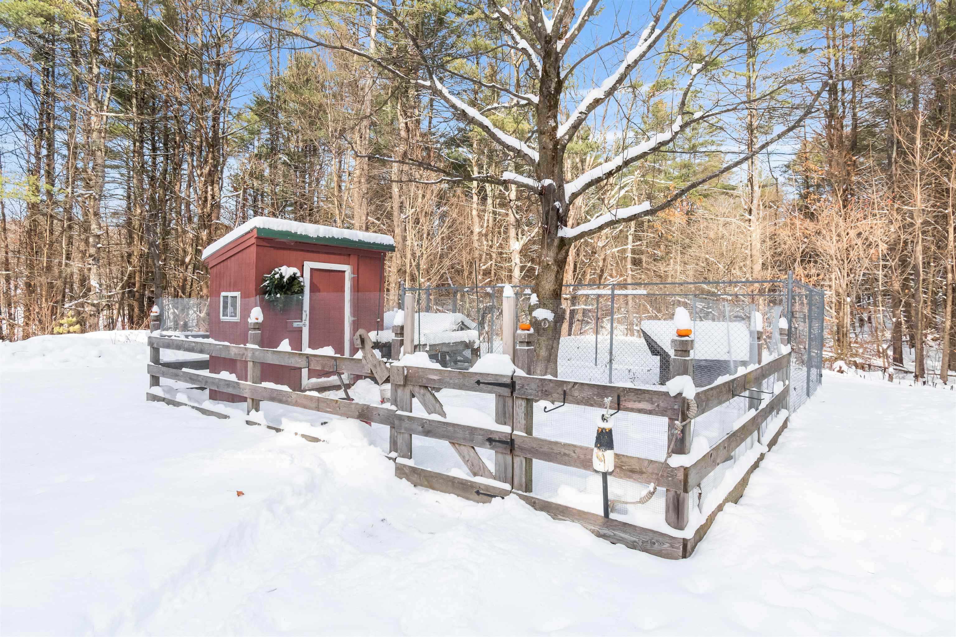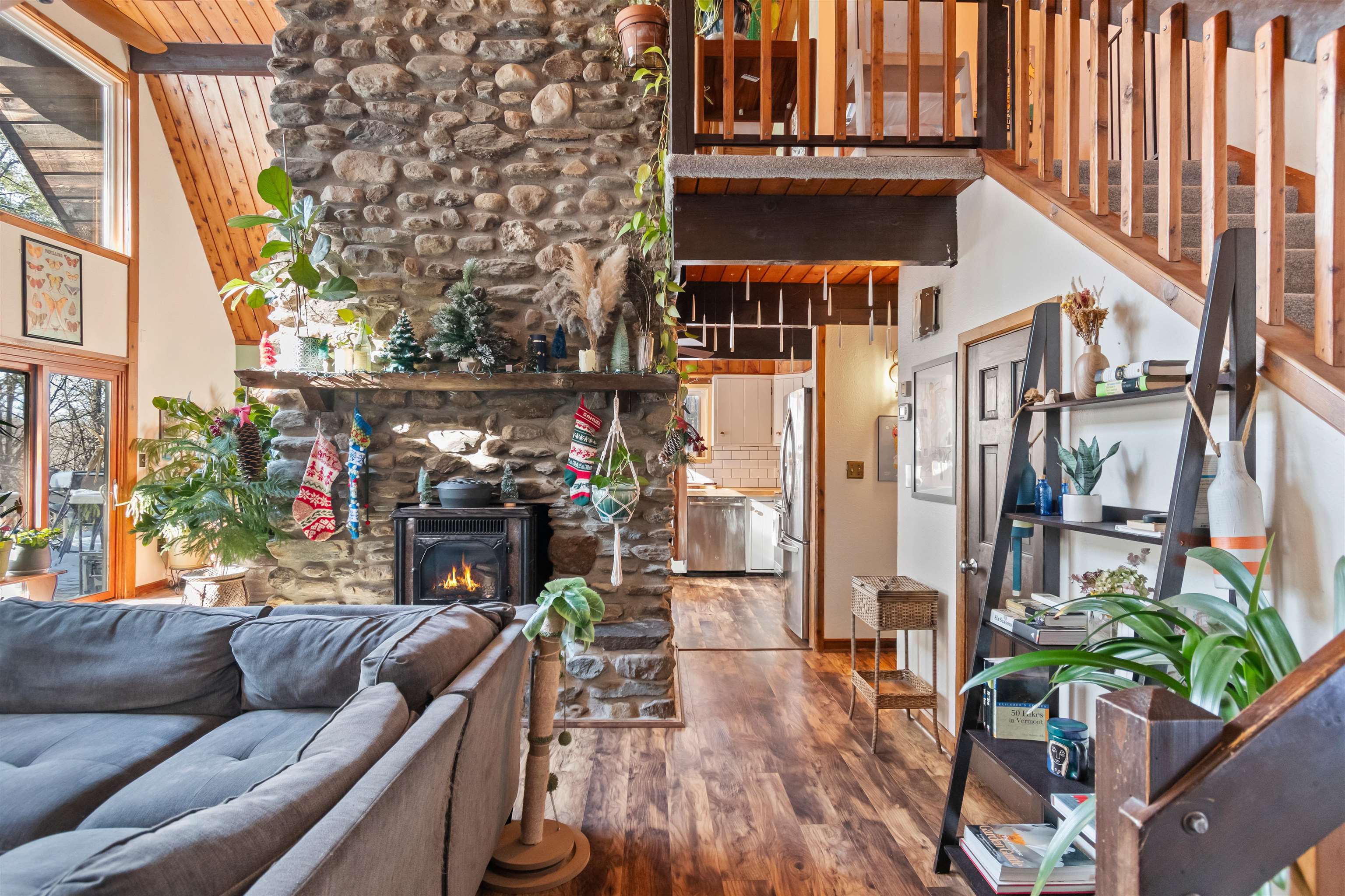What a retreat! Live the good life in the heart of Vermont with this amazing country home! Step into a dream as you walk inside to be greeted by massive new windows that immerse the living room with natural light. This beautiful home comes with a brand new kitchen renovation including new appliances, butcher block countertops, new sink, plumbing, and new tile backsplash. Featuring new flooring throughout that compliments the massive stone hearth with a gas stove. Relax with the view from an expansive wrap around deck to enjoy the serenity of the woods around you. The primary bedroom with private bath are conveniently located on the first floor. Walk up the open stairs to the bonus room loft which is perfect for a home office. Two additional separate bedrooms and bathroom complete the second level. The basement features a large roaring fire place for those winter nights with plenty of natural light from the walk out sliding glass doors. There is a large amount of storage as well for all of your family needs. The yard has been meticulously landscaped with perennial gardens, a blue stone patio, fire pit, an outdoor above ground pool, a fenced in dog area, chicken coop, and a large shed. The common land contains an amazing walking trail system. A quick drive to the Essex outlets featuring a variety of shops and restaurants. Enjoy the privacy of the woods while close to everything.