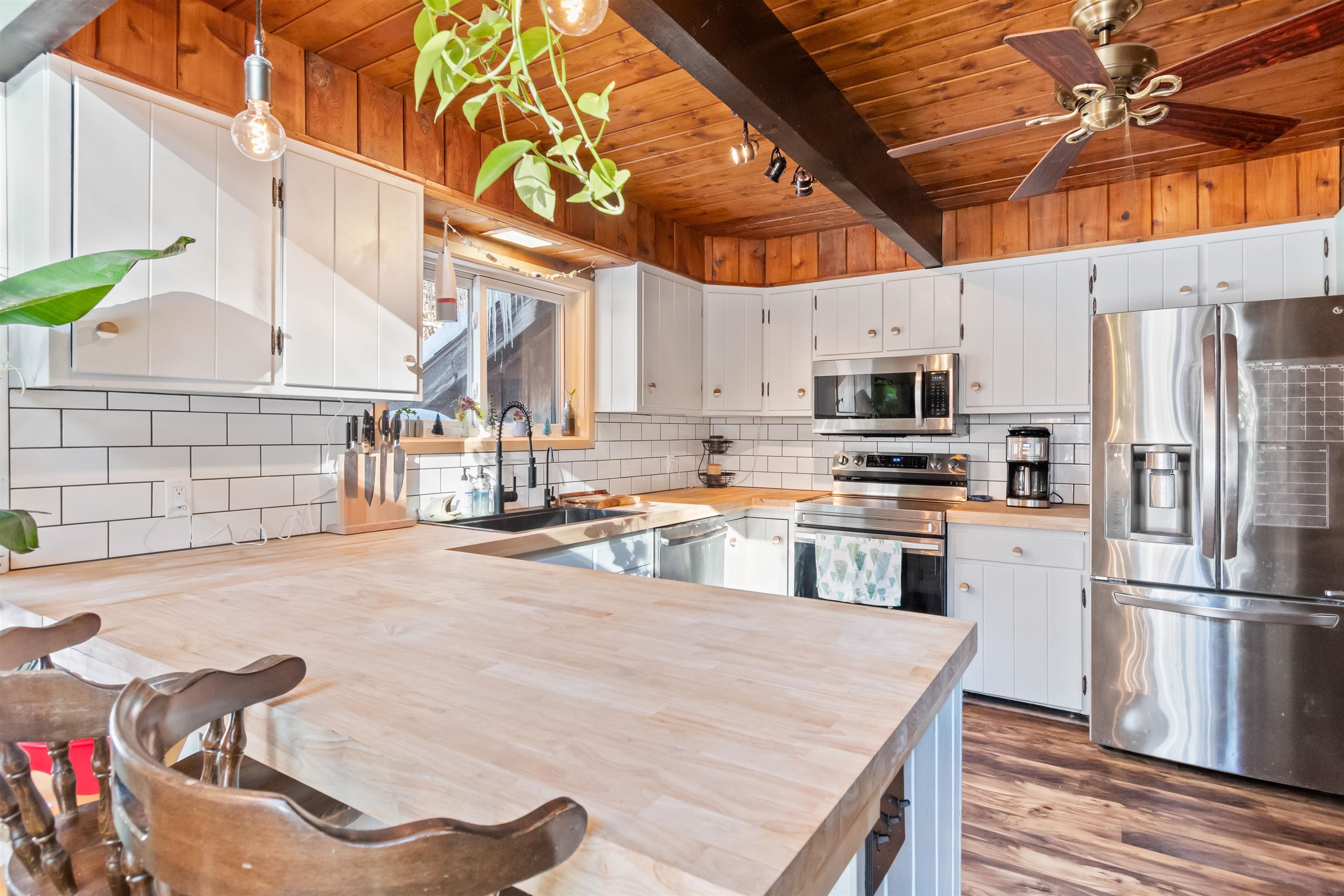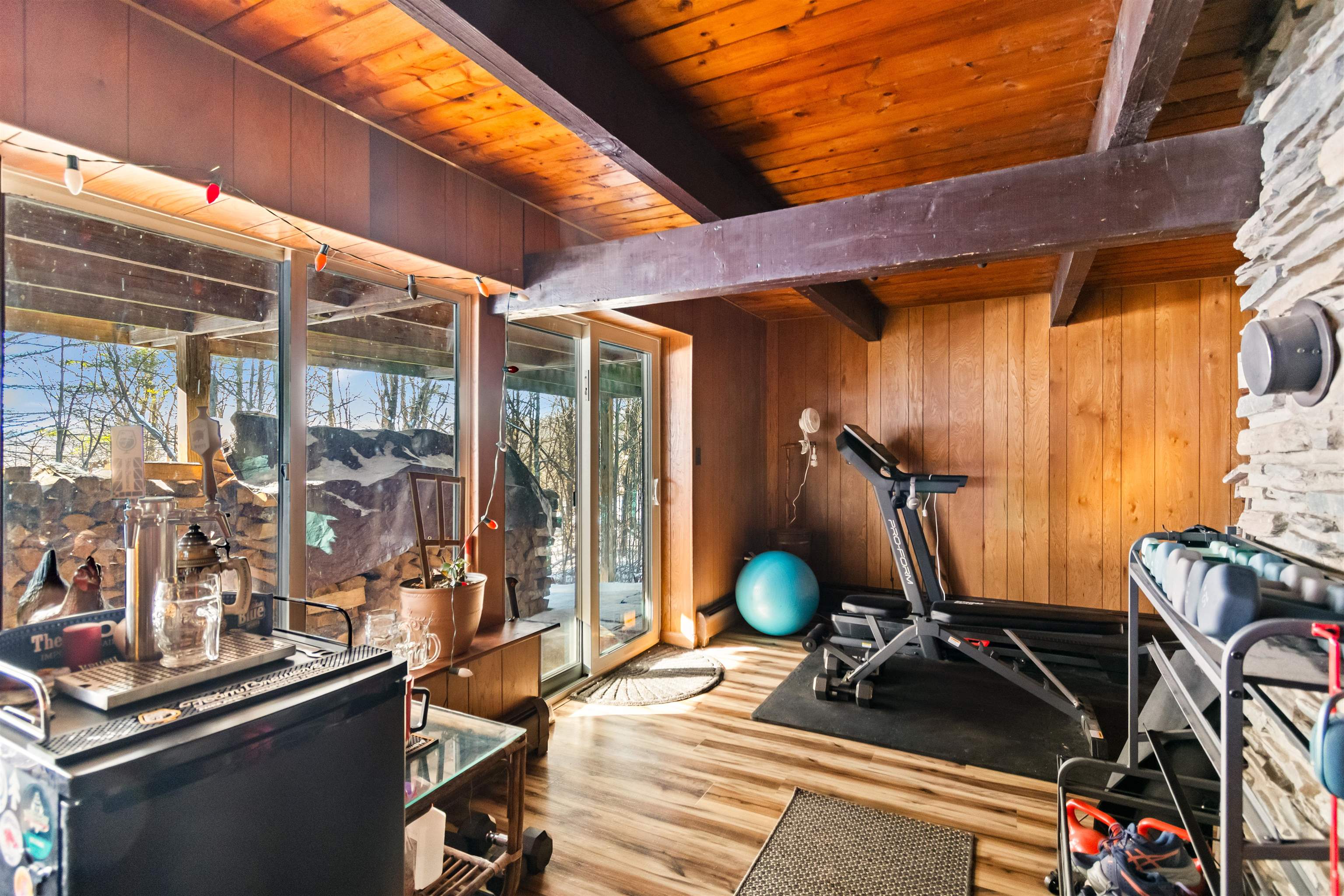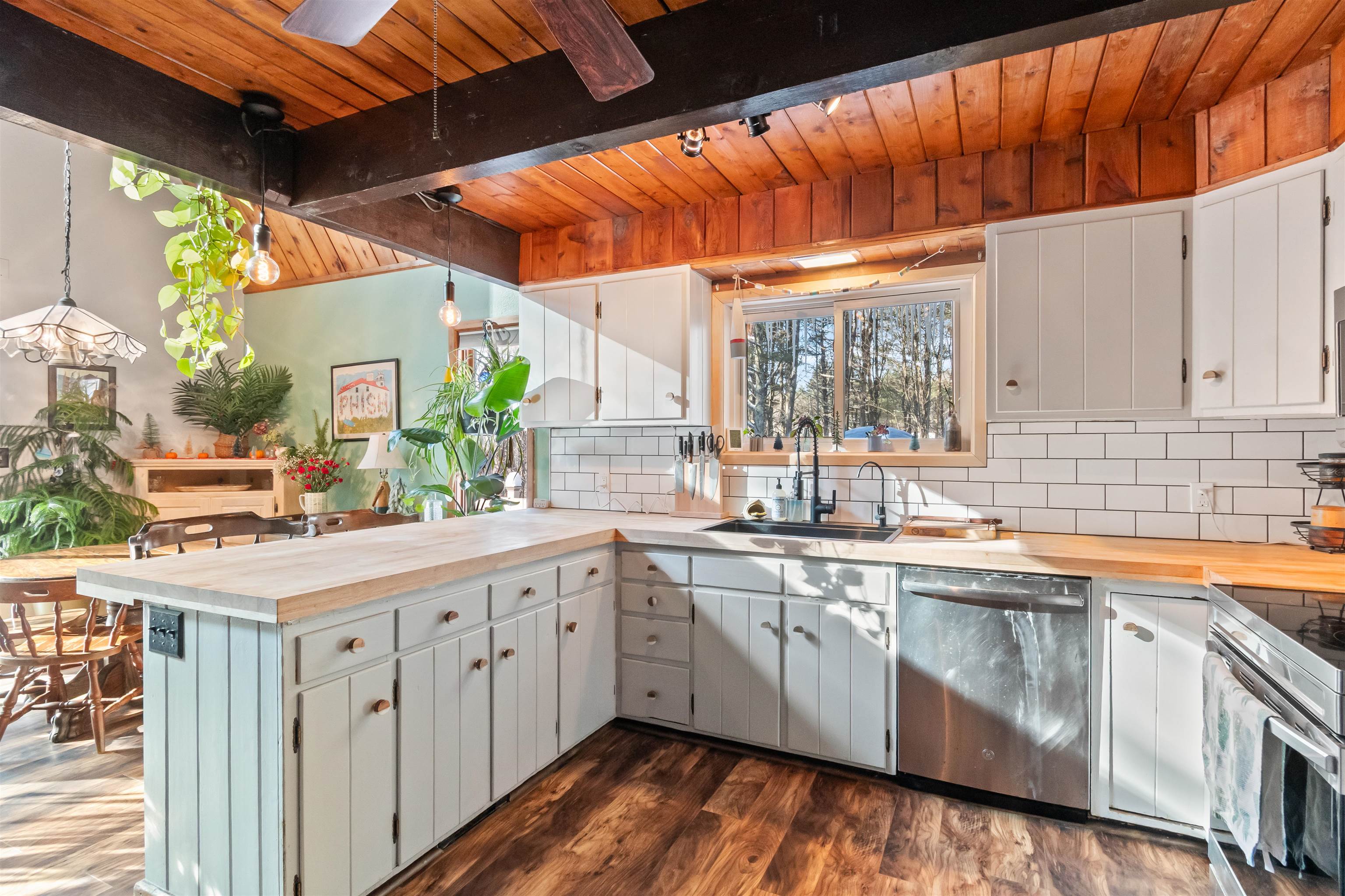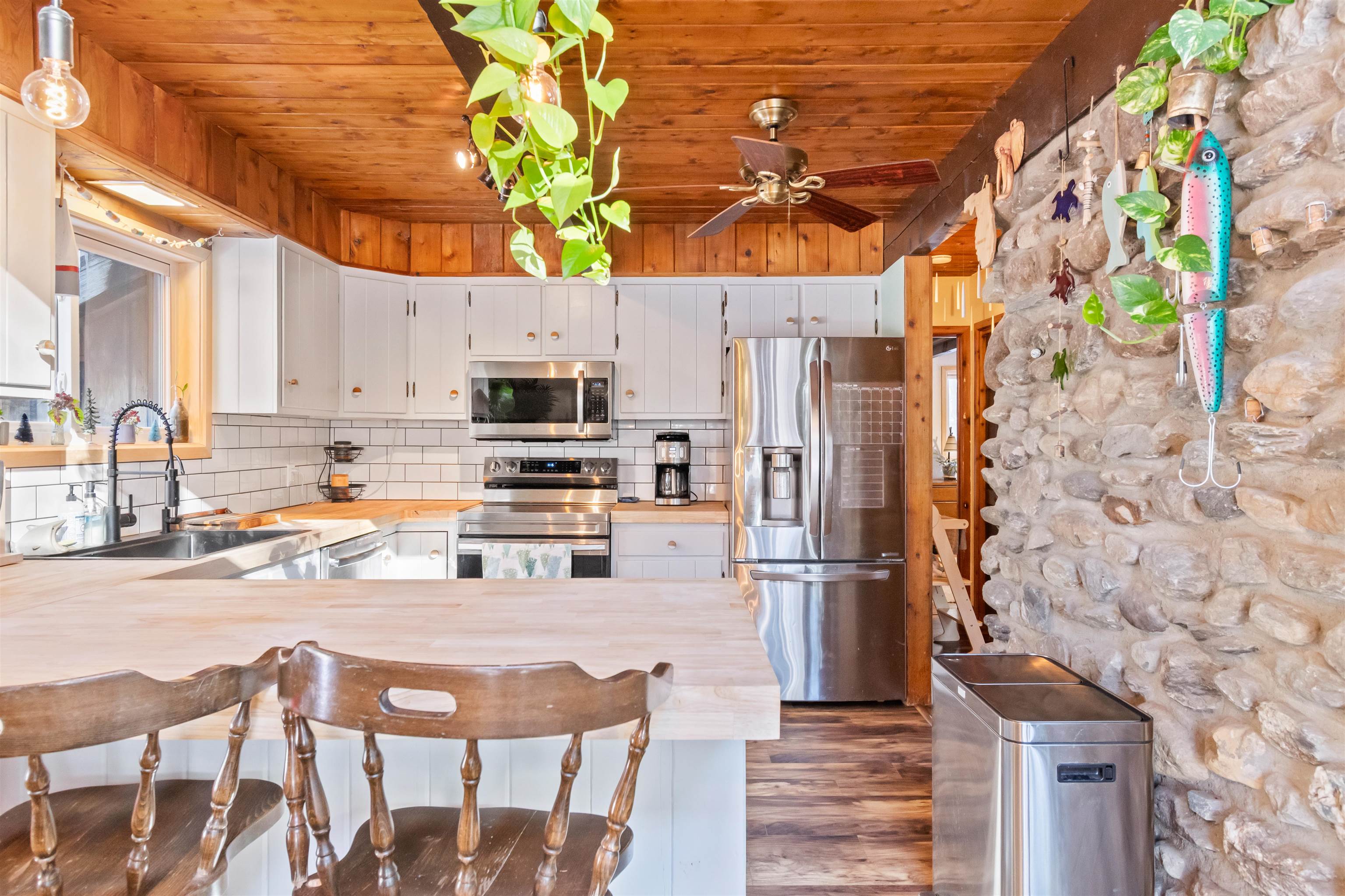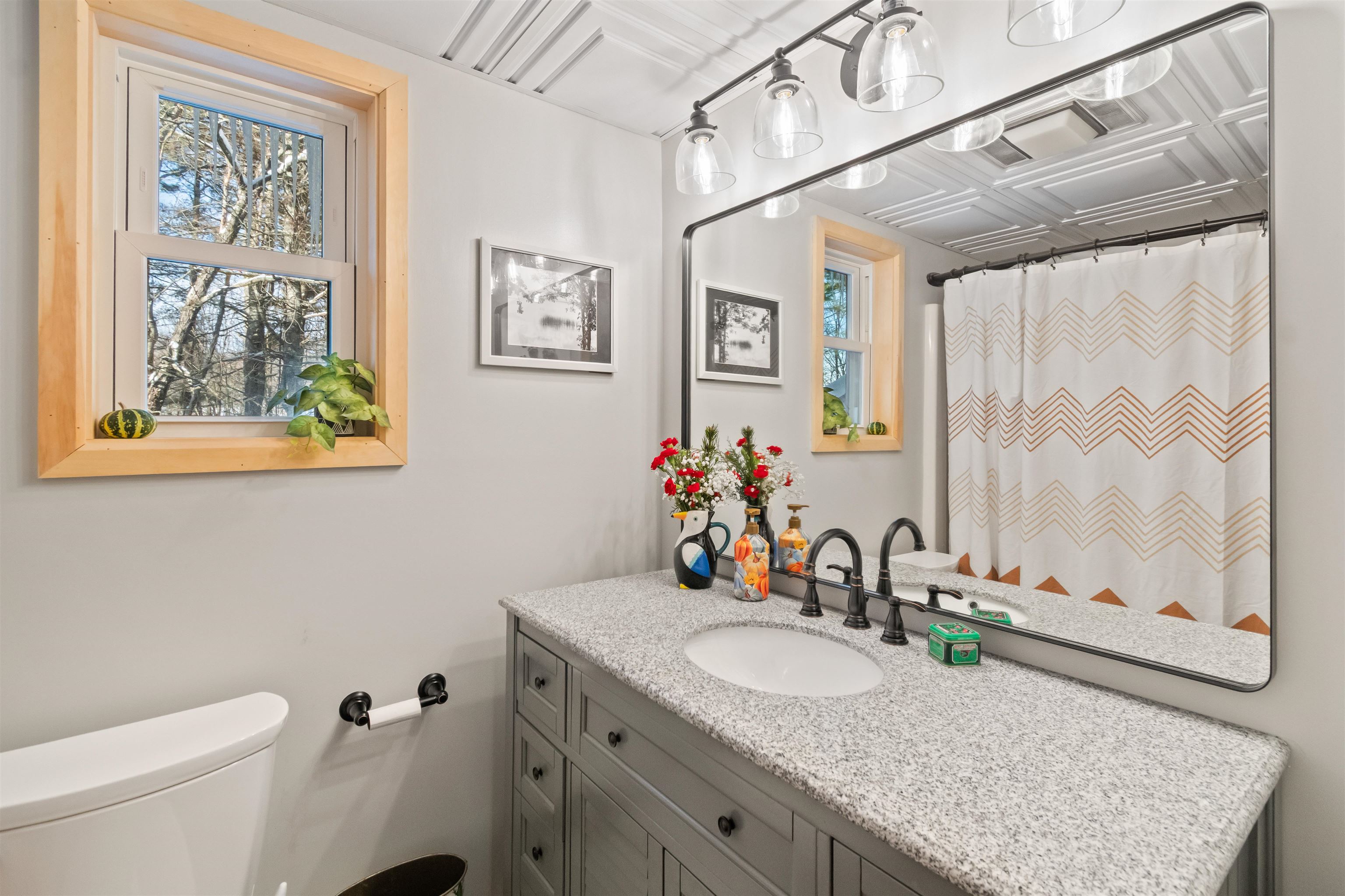 What a retreat! Live the good life in the heart of Vermont with this amazing country home! Step into a dream as you walk inside to be greeted by massive new windows that immerse the living room with natural light. This beautiful home comes with a brand new kitchen renovation including new appliances, butcher block countertops, new sink, plumbing, and new tile backsplash. Featuring new flooring throughout that compliments the massive stone hearth with a gas stove. Relax with the view from an expansive wrap around deck to enjoy the serenity of the woods around you. The primary bedroom with private bath are conveniently located on the first floor. Walk up the open stairs to the bonus room loft which is perfect for a home office. Two additional separate bedrooms and bathroom complete the second level. The basement features a large roaring fire place for those winter nights with plenty of natural light from the walk out sliding glass doors. There is a large amount of storage as well for all of your family needs. The yard has been meticulously landscaped with perennial gardens, a blue stone patio, fire pit, an outdoor above ground pool, a fenced in dog area, chicken coop, and a large shed. The common land contains an amazing walking trail system. A quick drive to the Essex outlets featuring a variety of shops and restaurants. Enjoy the privacy of the woods while close to everything.