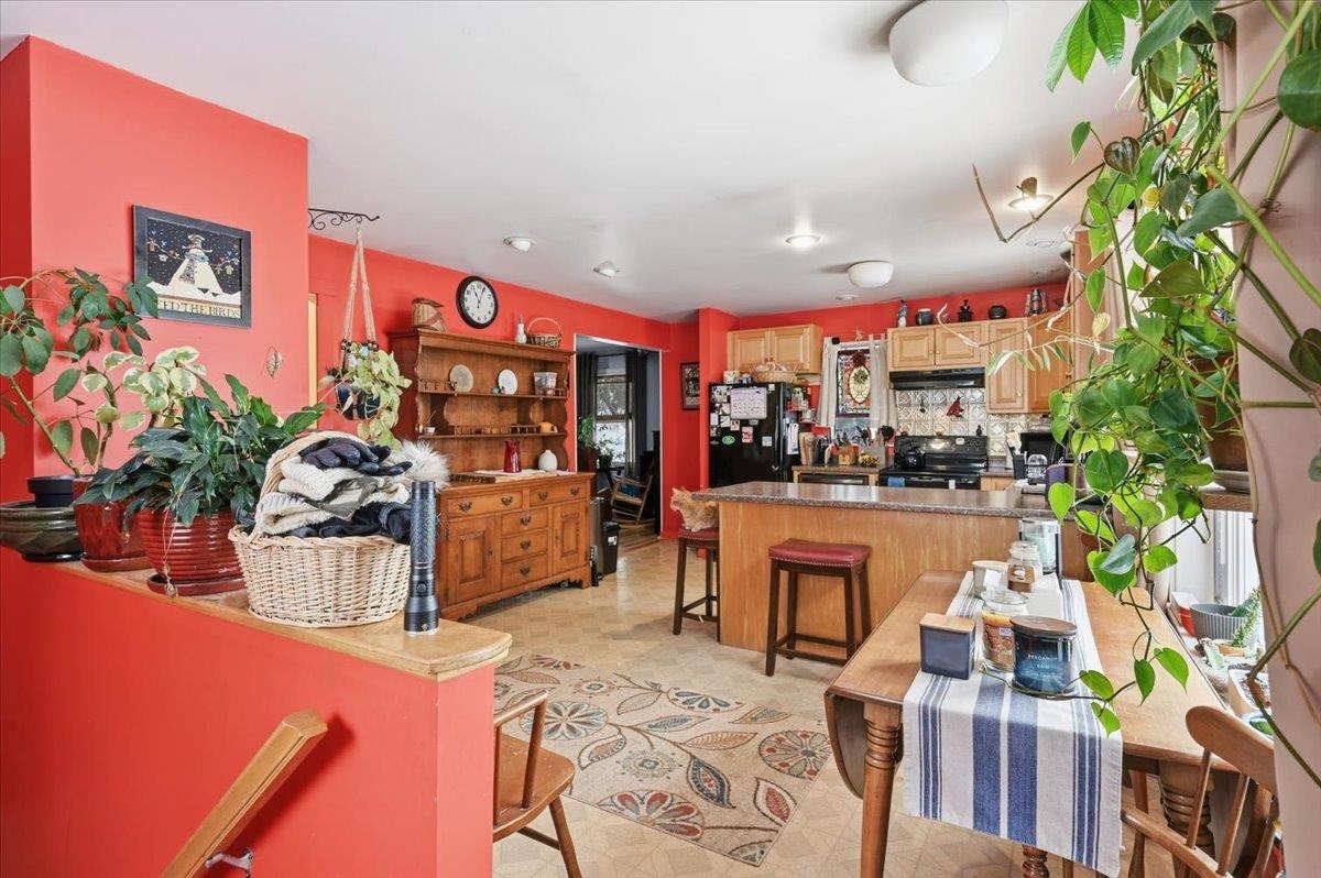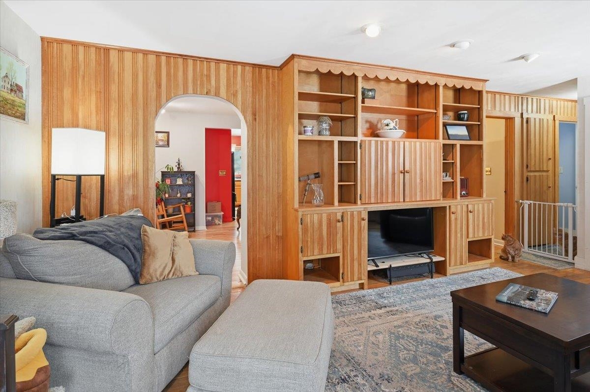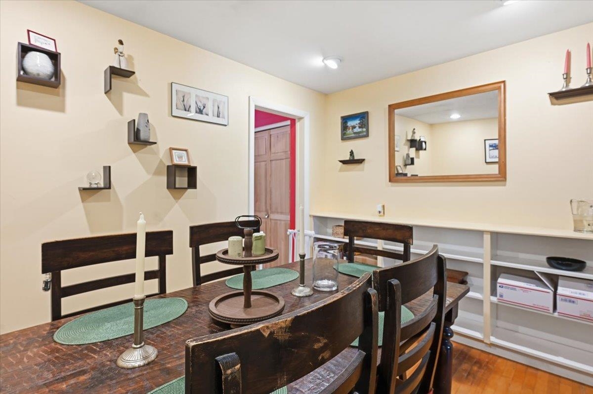 Welcome home to this charming ranch-style property set on a spacious lot in the heart of Essex Junction. This inviting 2-bedroom, 1-bath home offers comfortable one-level living with an easy, open layout and thoughtful features throughout. The bright living room is filled with natural light and highlighted by a built-in entertainment center and warm hardwood flooring that carries through the main living areas. The open eat-in kitchen features sleek appliances and plenty of room for everyday dining, while the adjoining dining area offers flexibility as a cozy den or home office if desired. Two well-sized bedrooms and a full bath complete the main level. The full basement adds valuable additional space with a partially finished area ideal for a family room, playroom, office, or workout zone, along with laundry hookups and great storage options. Outside, the large fenced-in yard is perfect for gardening, pets, and play. The detached garage doubles as an excellent workshop space. Ideally located close to shopping, restaurants, grocery stores, the popular Five Corners, and more, this home offers comfort, convenience, and the chance to enjoy the best of Essex Junction living. Easy commute to Winooski, Colchester & Willston!
