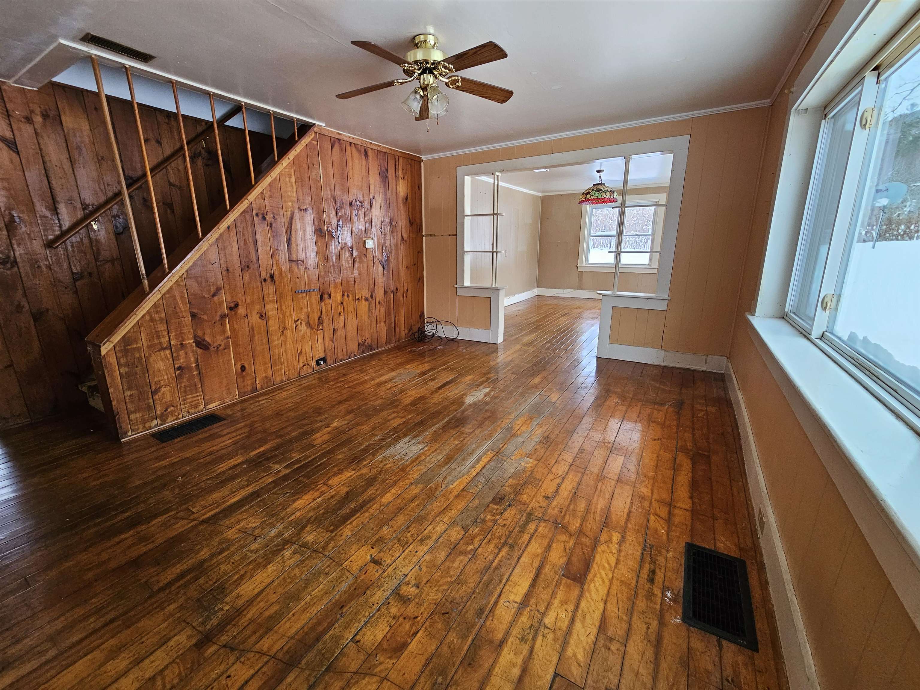 This classic Vermont home offers an unbeatable blend of historic charm and natural beauty. While it needs some upgrades, this is your chance to personalize and customize every detail to make it your dream home. Boasting natural light and beautiful Hardwood Floors, this 1900's home is open and spacious. Minutes from the Long Trail and easy access to the Lamoille River for Kayaking, tubing, fishing and more! While being in a High and Dry location. The Quaint yard has the perfect amount of space to enjoy outdoor family activities, garden, or simply relax. Abutting a beautiful rolling field outback, you can look forward to mornings watching the Deer Graze from your Living & Dining Room windows. Conveniently located between 3 major Ski resorts, and within walking distance to shopping, live music and a sit-down restaurant. The attached garage is a valuable asset, featuring a pit for mechanical work, ideal for car enthusiasts or DIY projects.